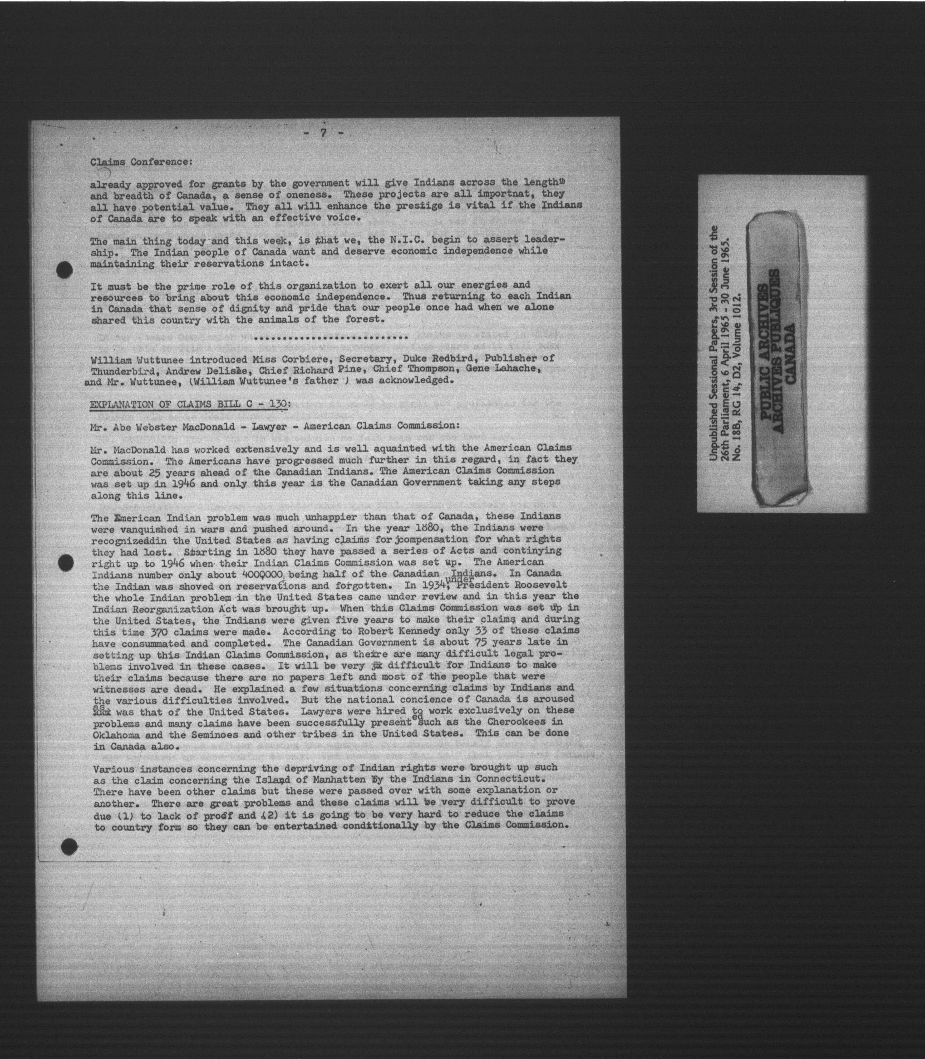 Unpublished sessional papers, 3rd Session, 26th Parliament - 3683