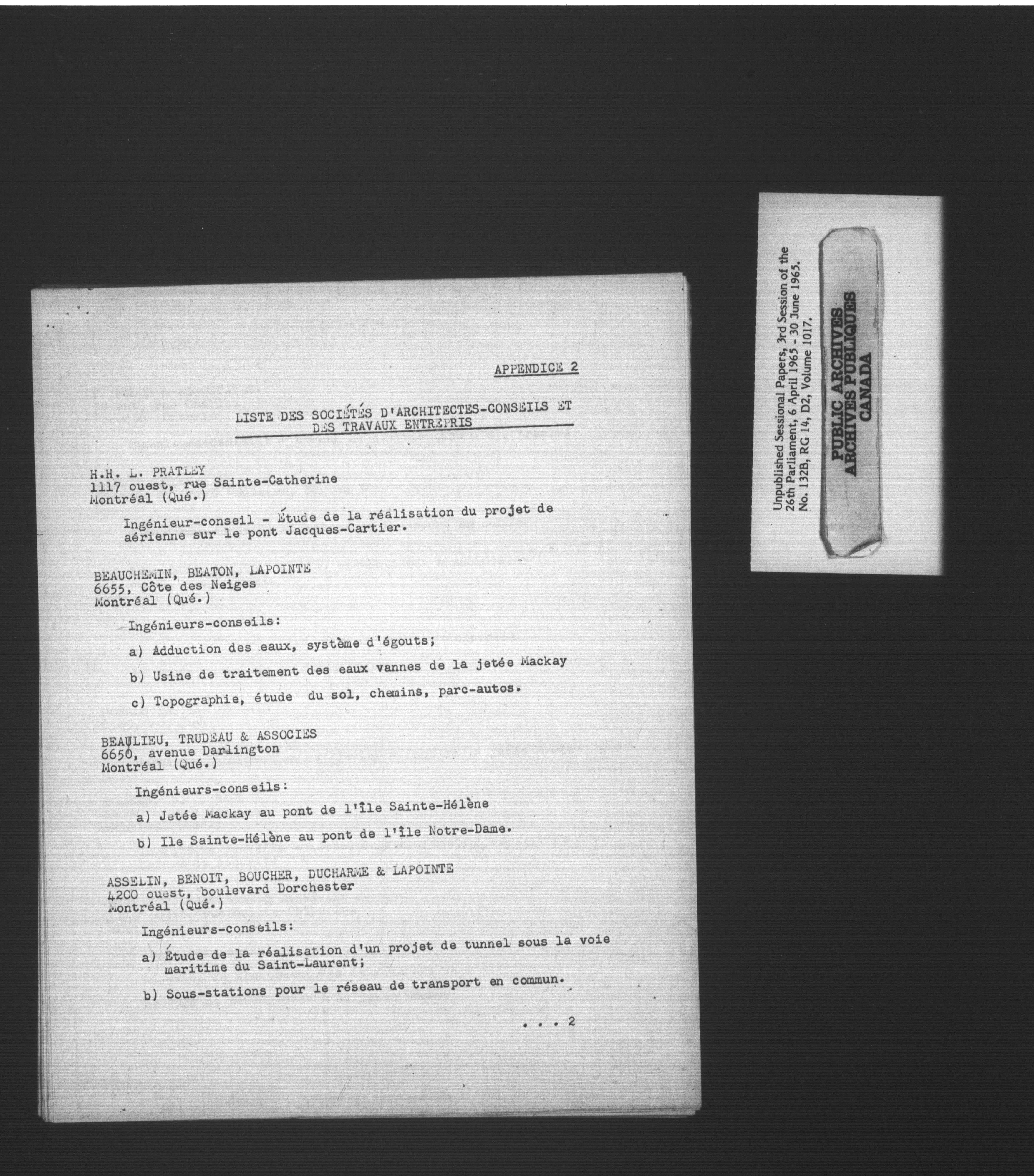 Unpublished sessional papers, 3rd Session, 26th Parliament - 3686