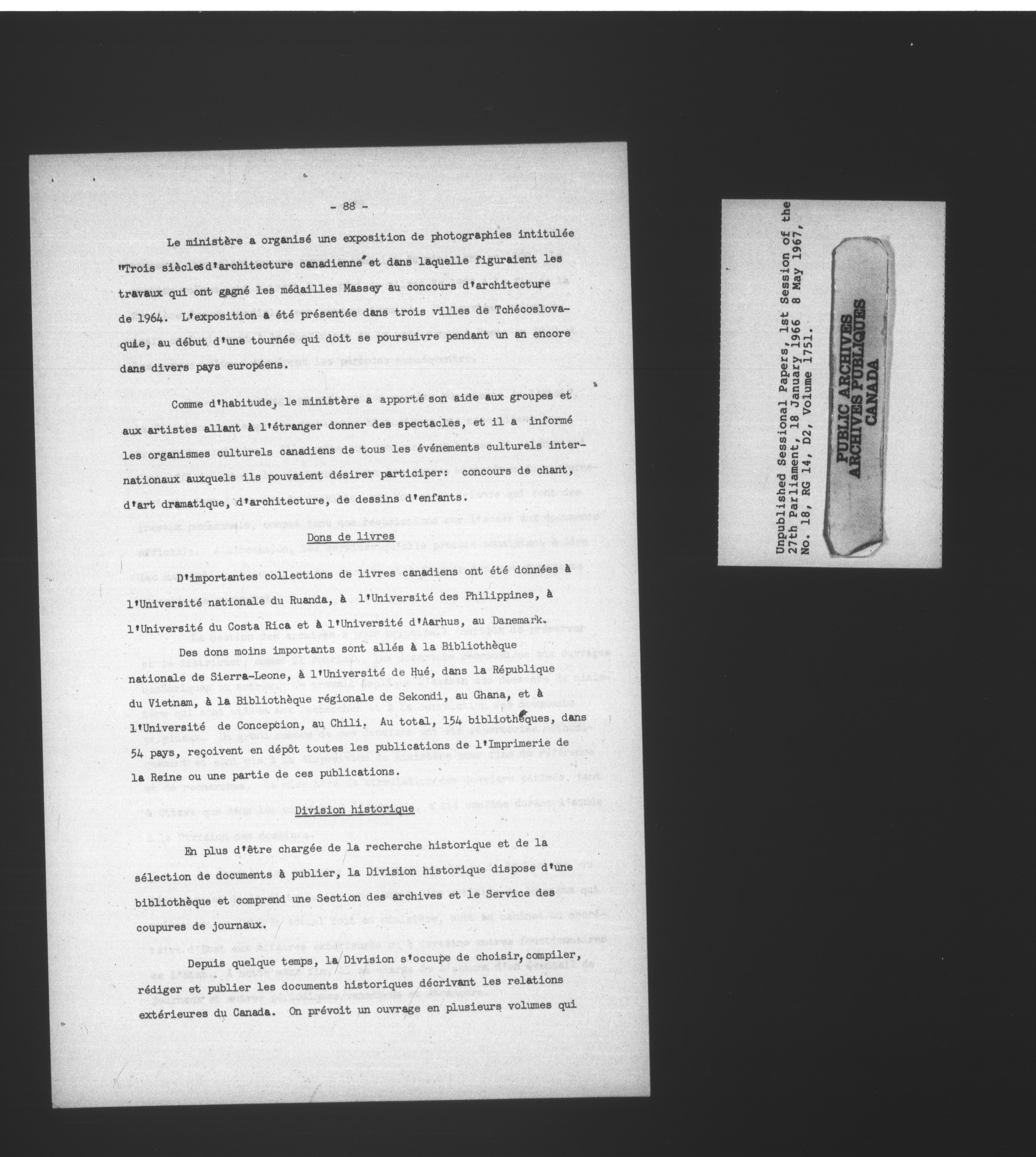 Unpublished sessional papers, 1st Session, 27th Parliament - 3689
