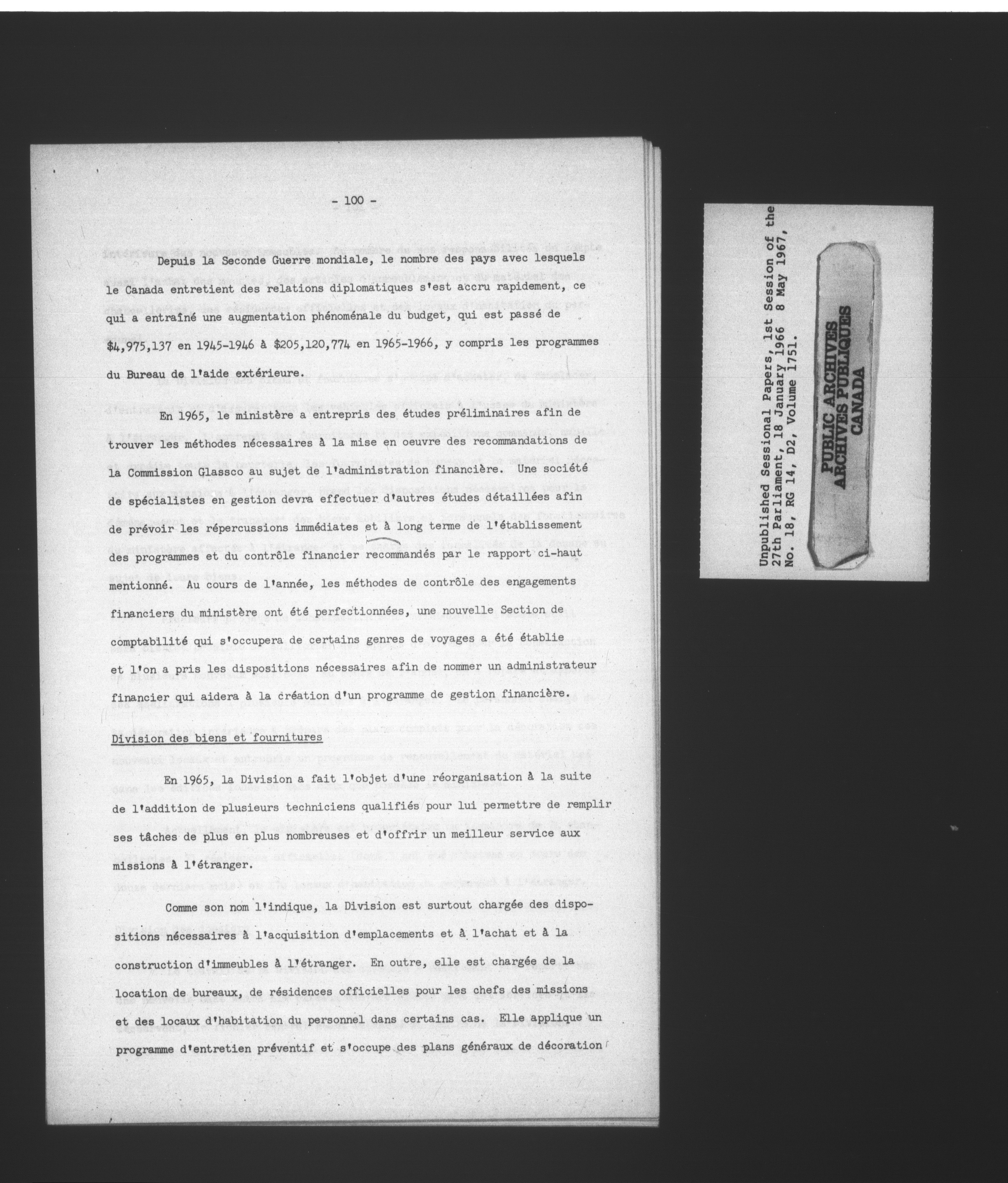Unpublished sessional papers, 1st Session, 27th Parliament - 3689