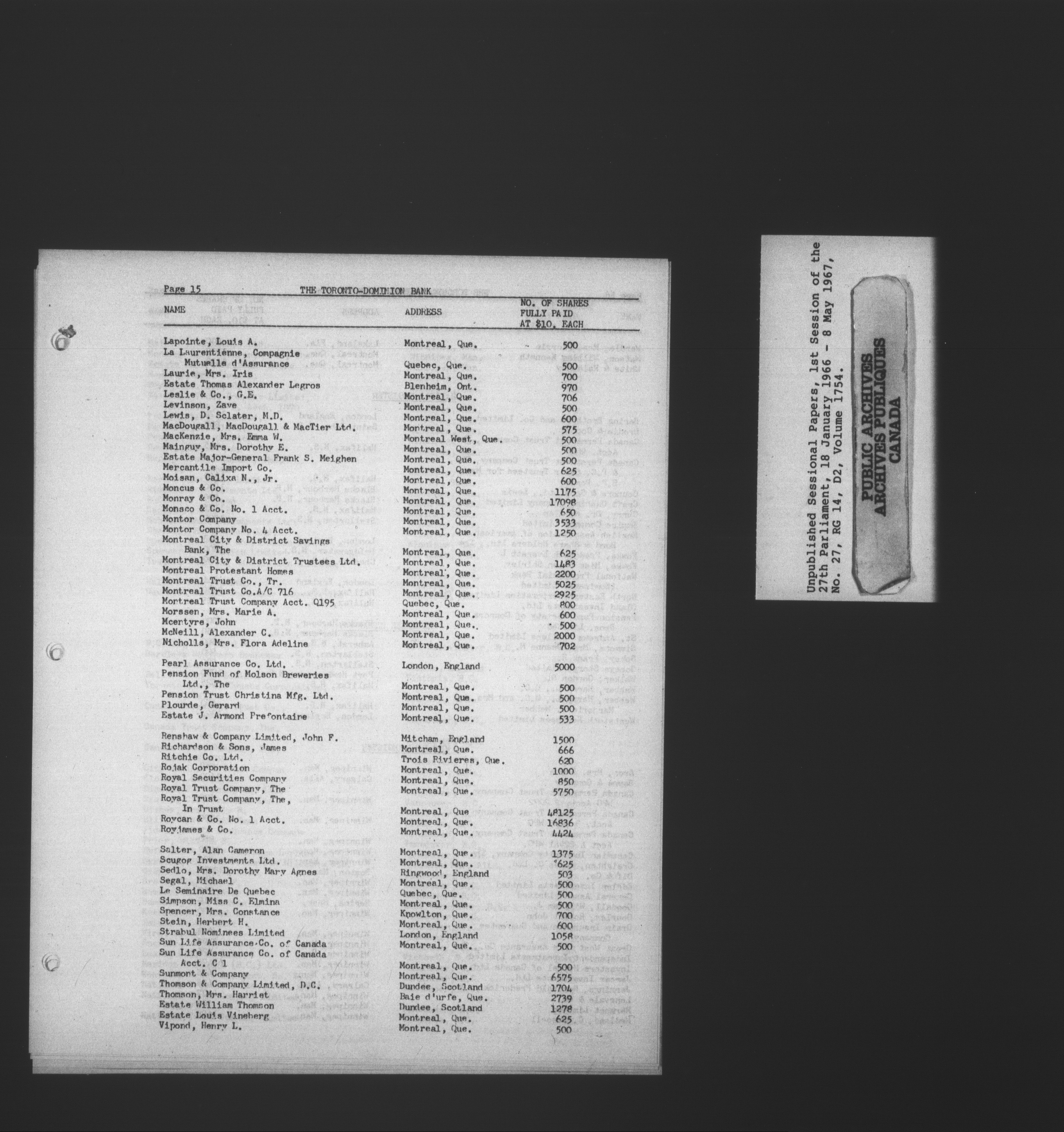 Unpublished sessional papers, 1st Session, 27th Parliament - 3690