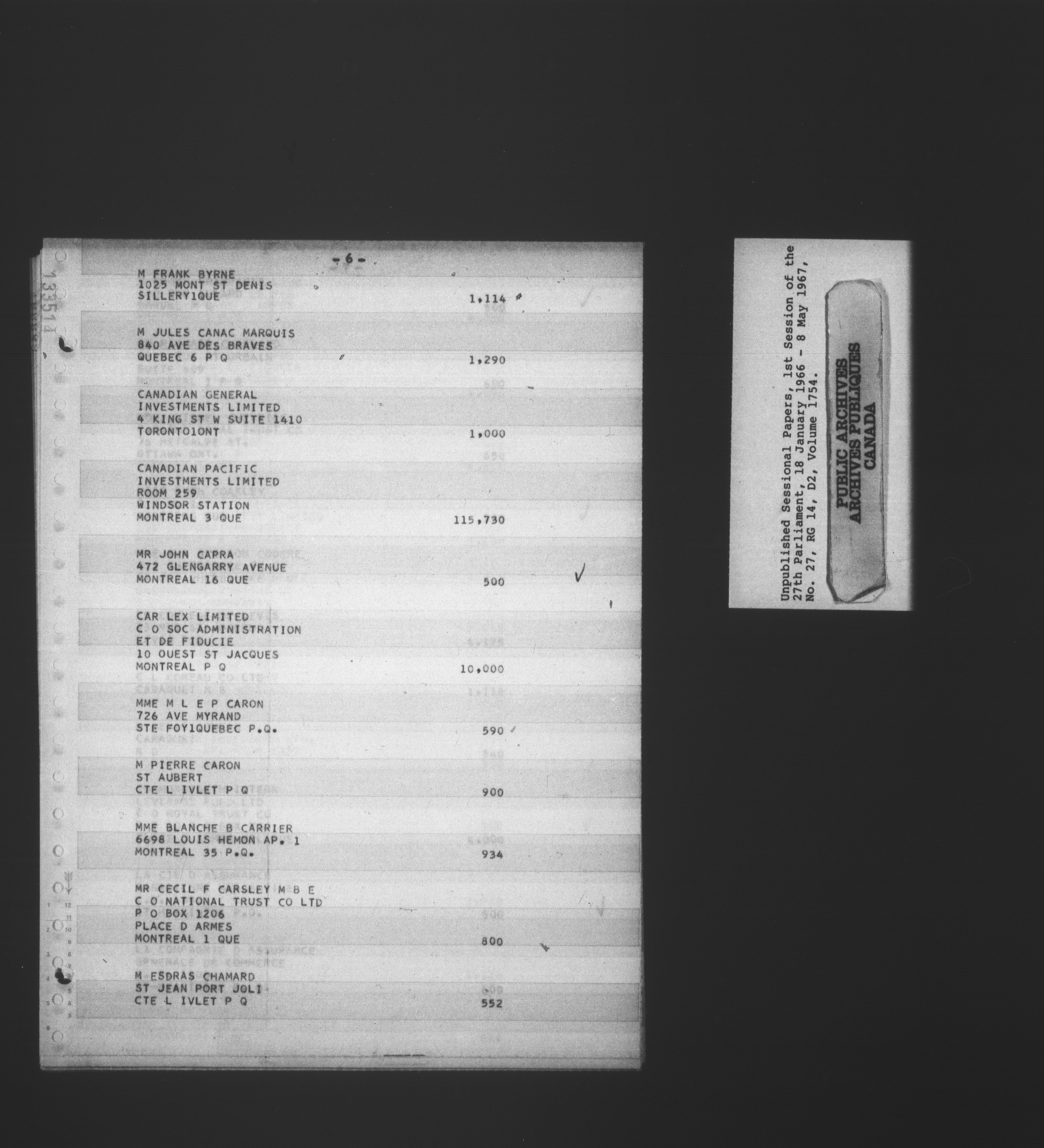 Unpublished sessional papers, 1st Session, 27th Parliament - 3690