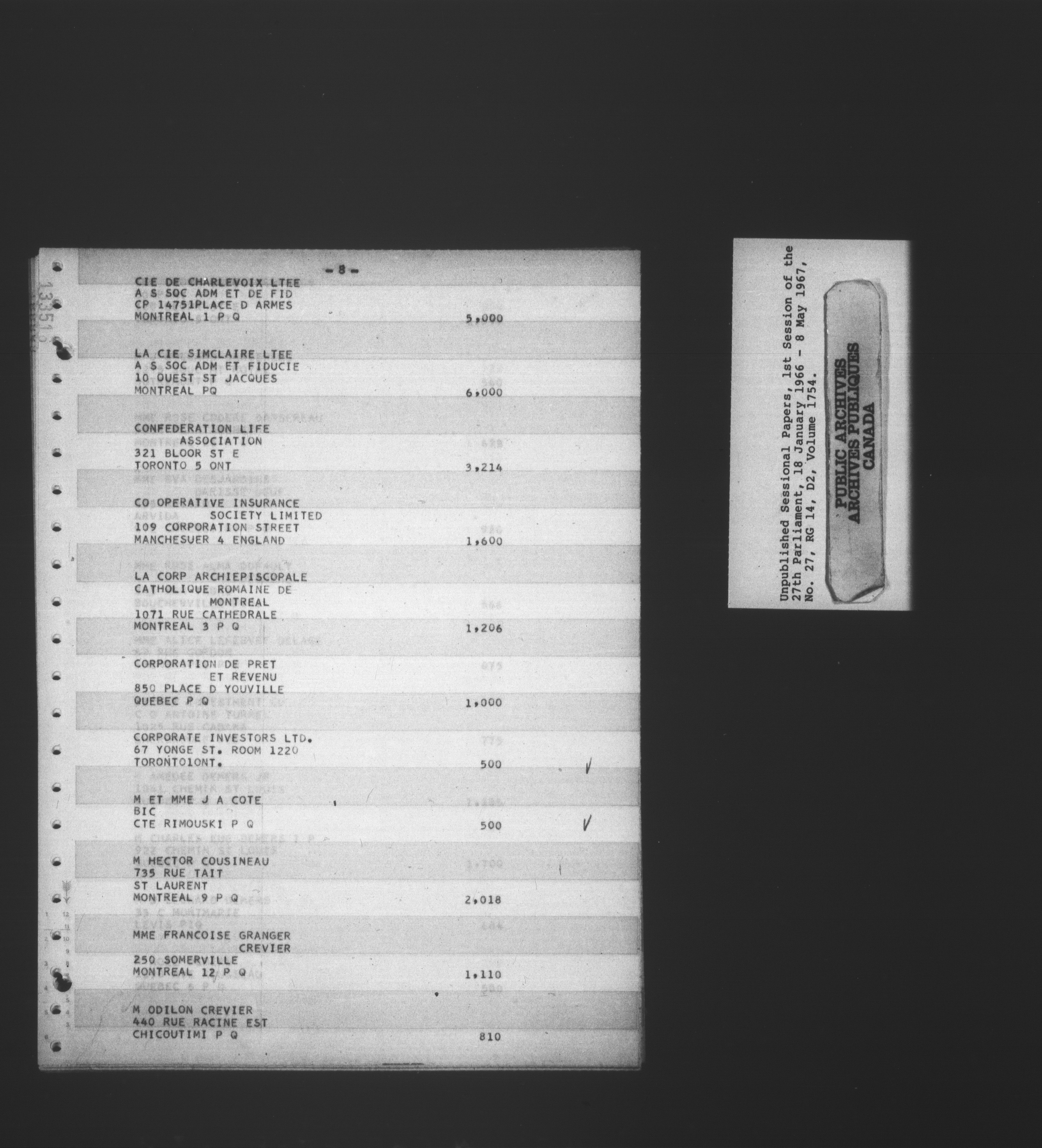 Unpublished sessional papers, 1st Session, 27th Parliament - 3690