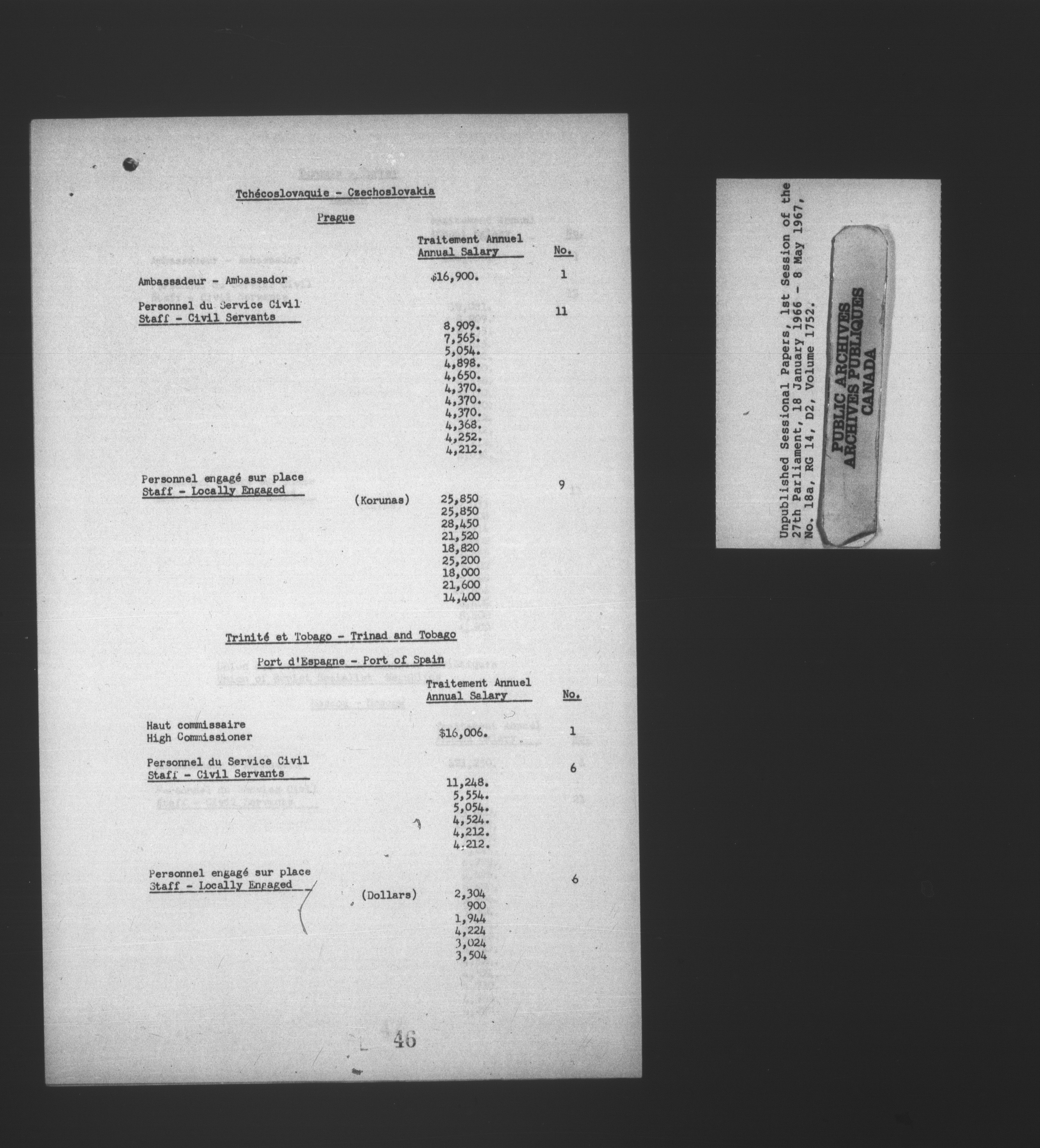 Unpublished sessional papers, 1st Session, 27th Parliament - 3690