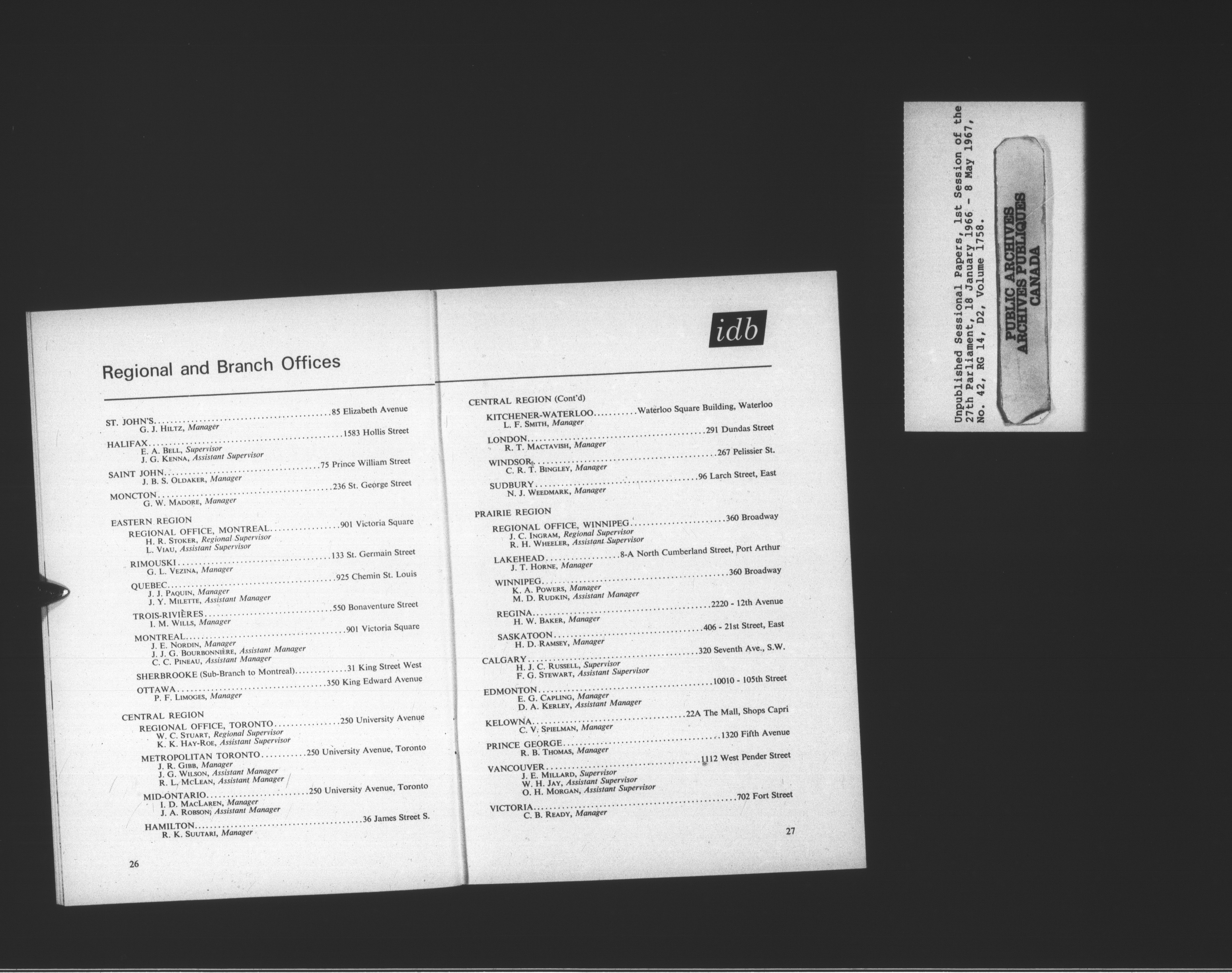 Unpublished sessional papers, 1st Session, 27th Parliament - 3692