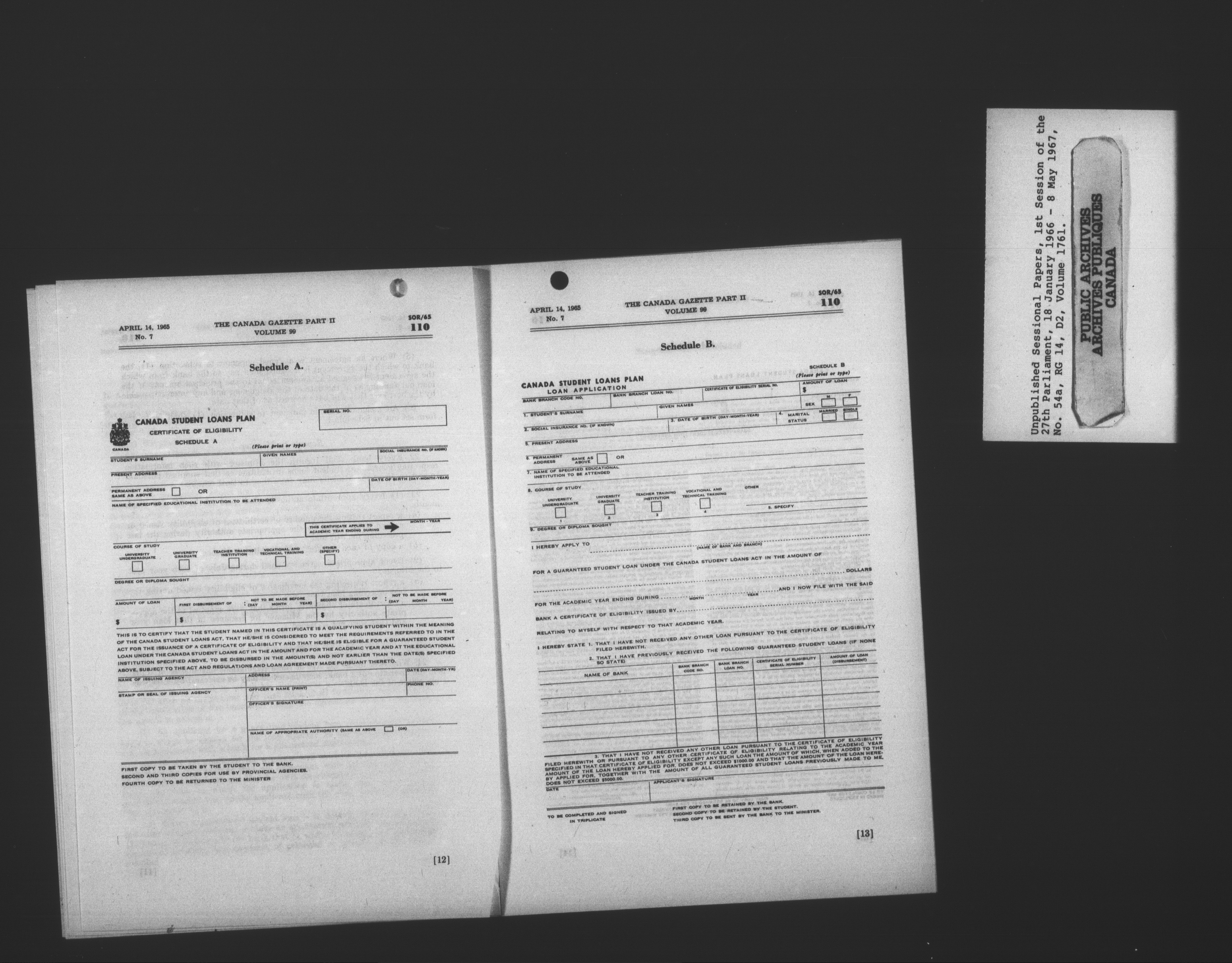 Unpublished sessional papers, 1st Session, 27th Parliament - 3694