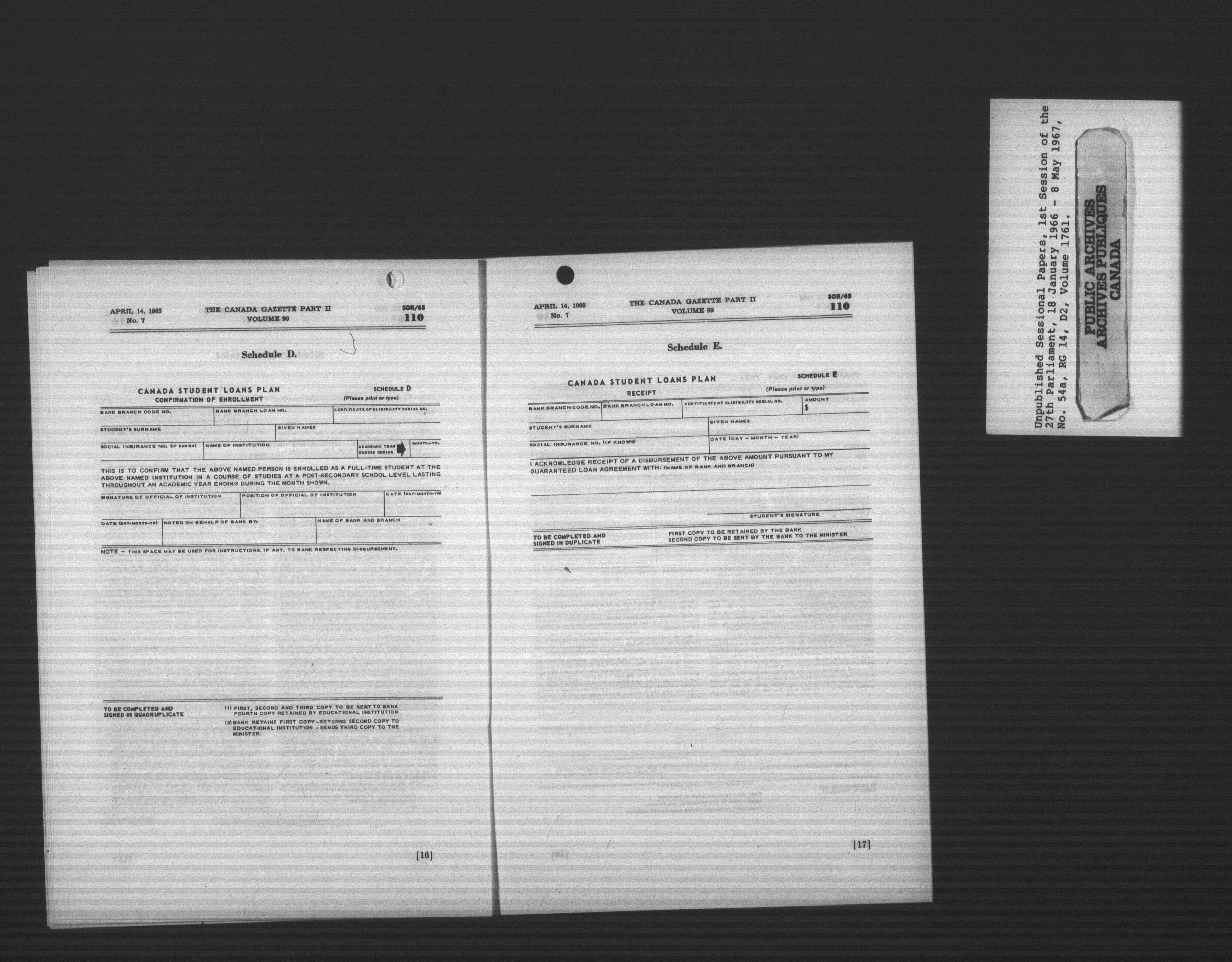 Unpublished sessional papers, 1st Session, 27th Parliament - 3694