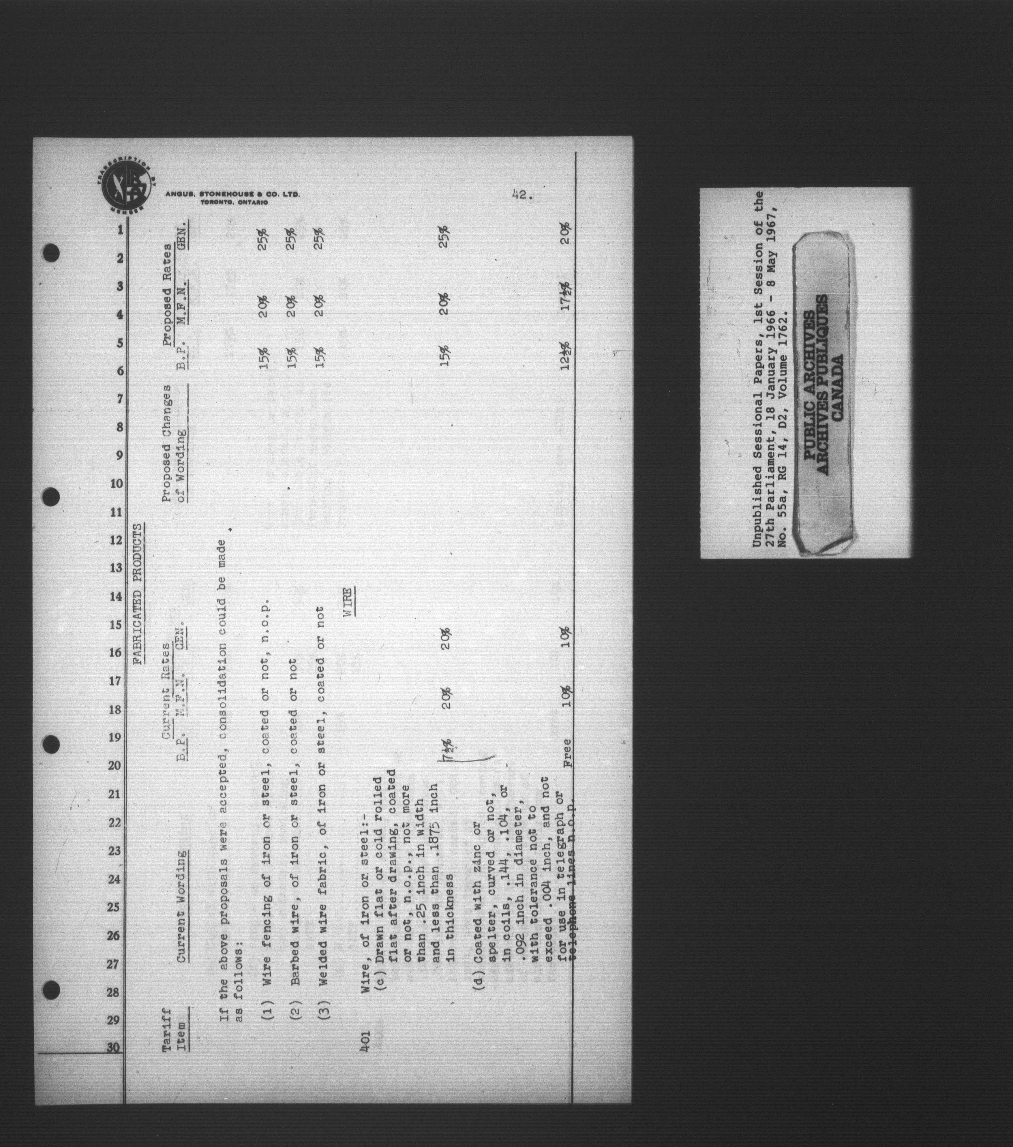 Unpublished sessional papers, 1st Session, 27th Parliament - 3695
