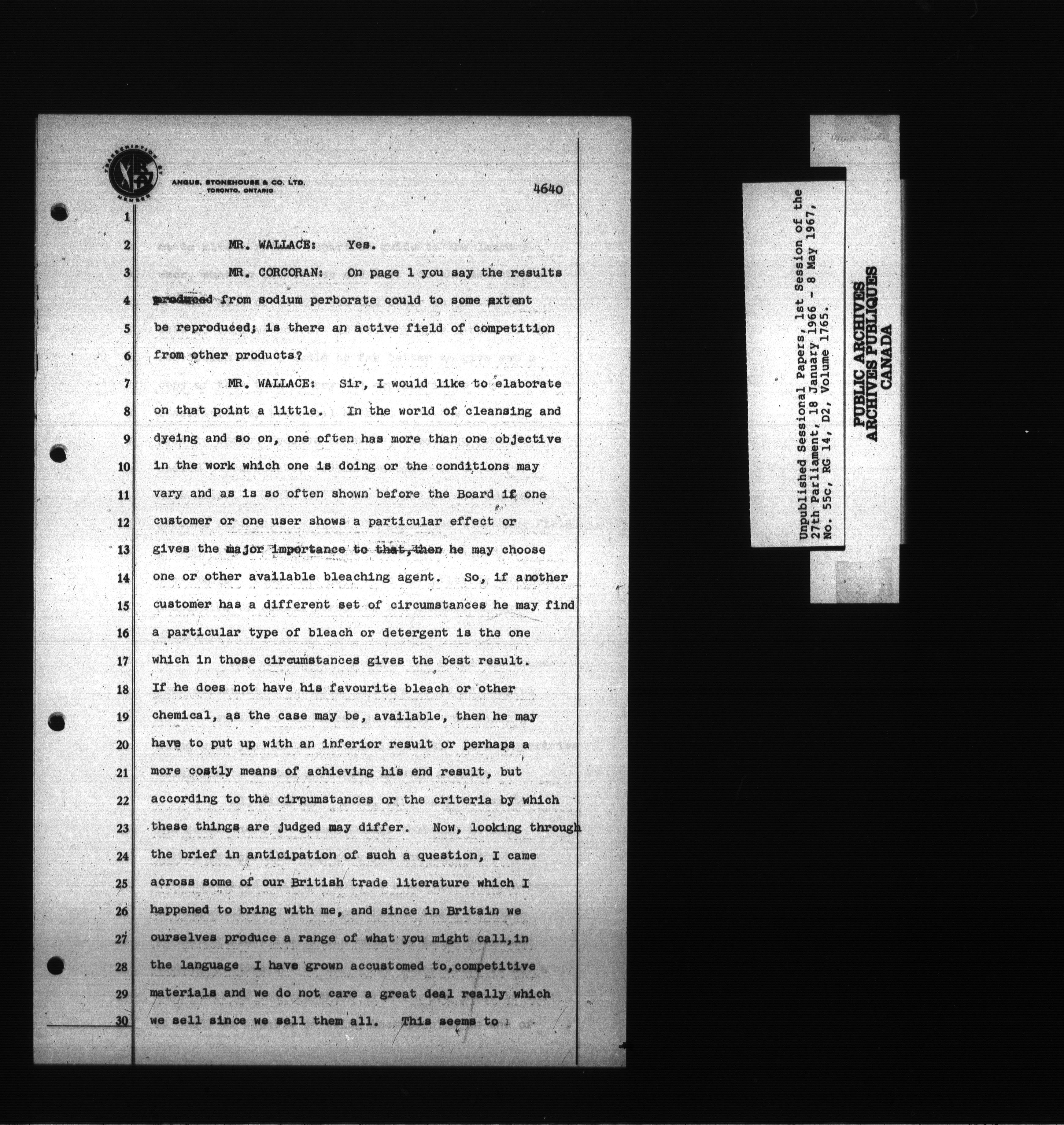 Unpublished sessional papers, 1st Session, 27th Parliament - 3697