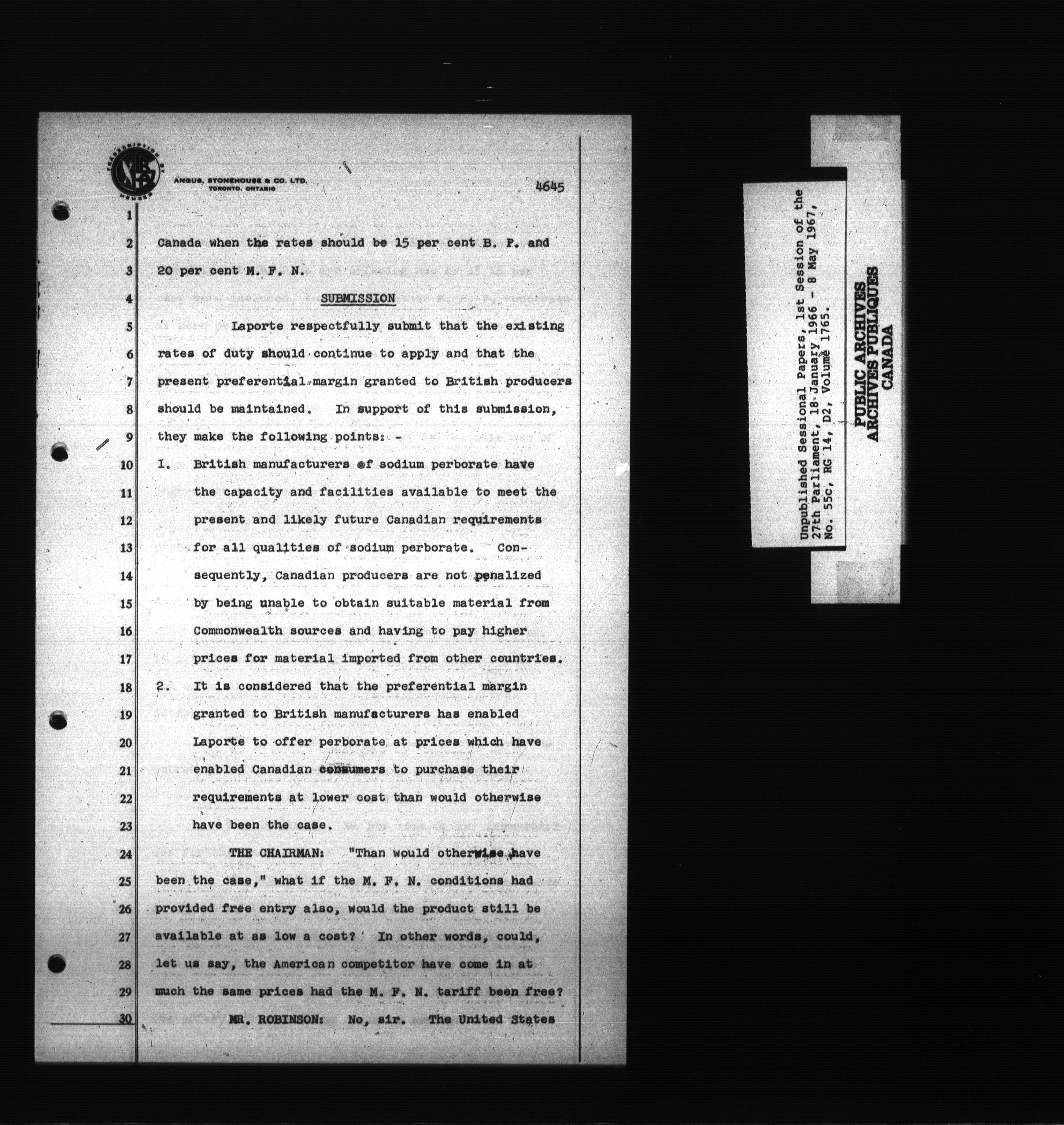 Unpublished sessional papers, 1st Session, 27th Parliament - 3697