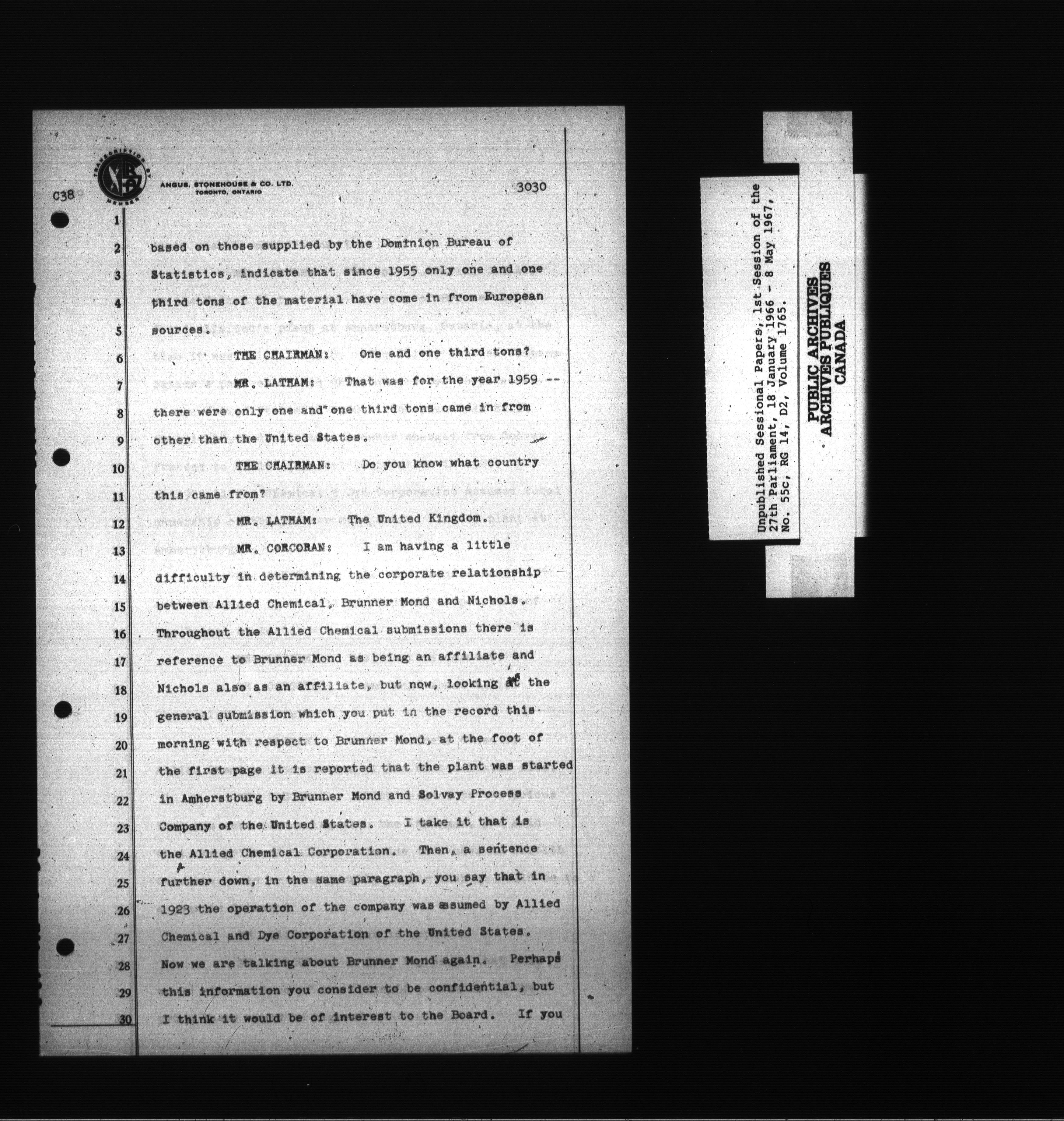 Unpublished sessional papers, 1st Session, 27th Parliament - 3697