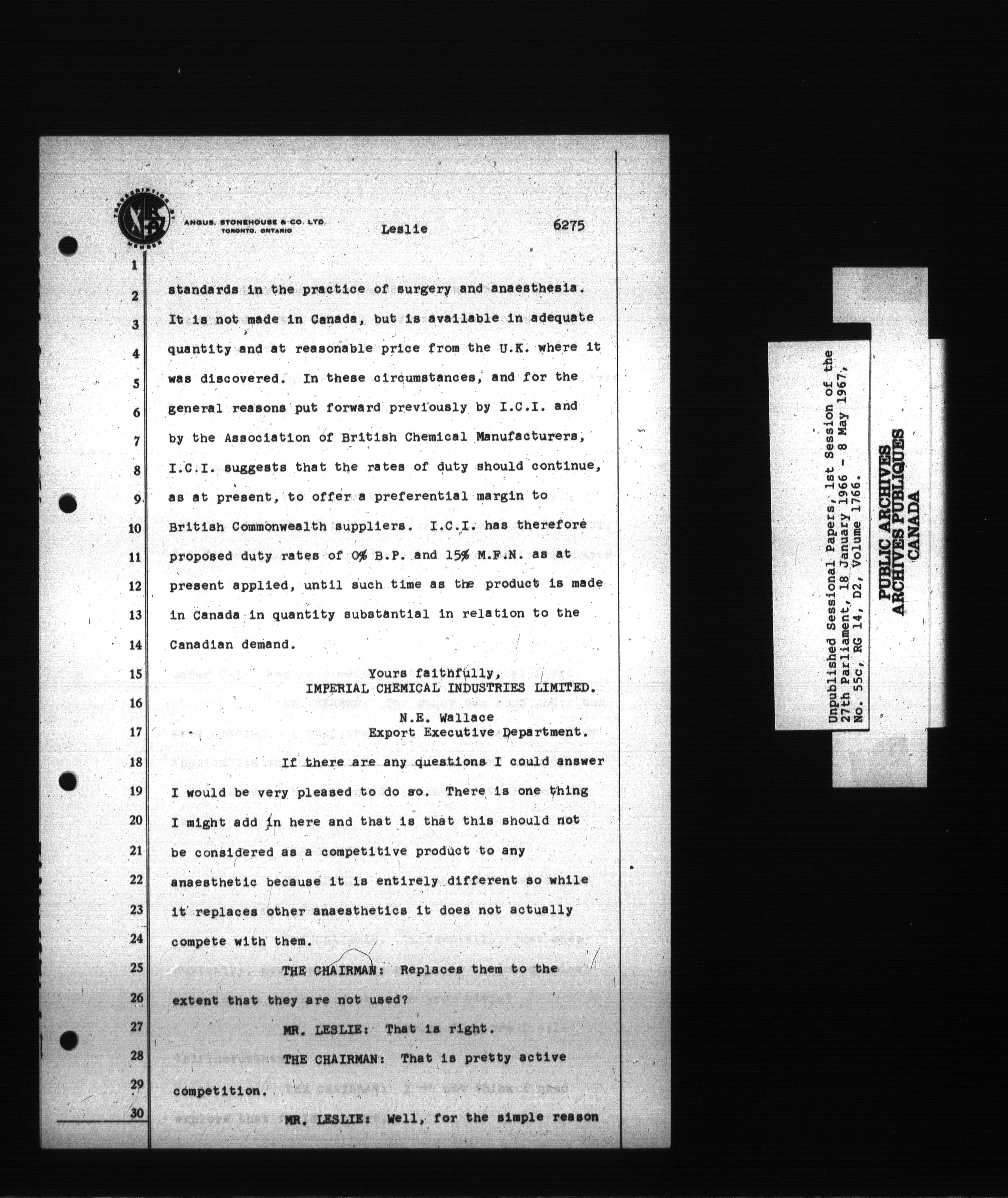 Unpublished sessional papers, 1st Session, 27th Parliament - 3698