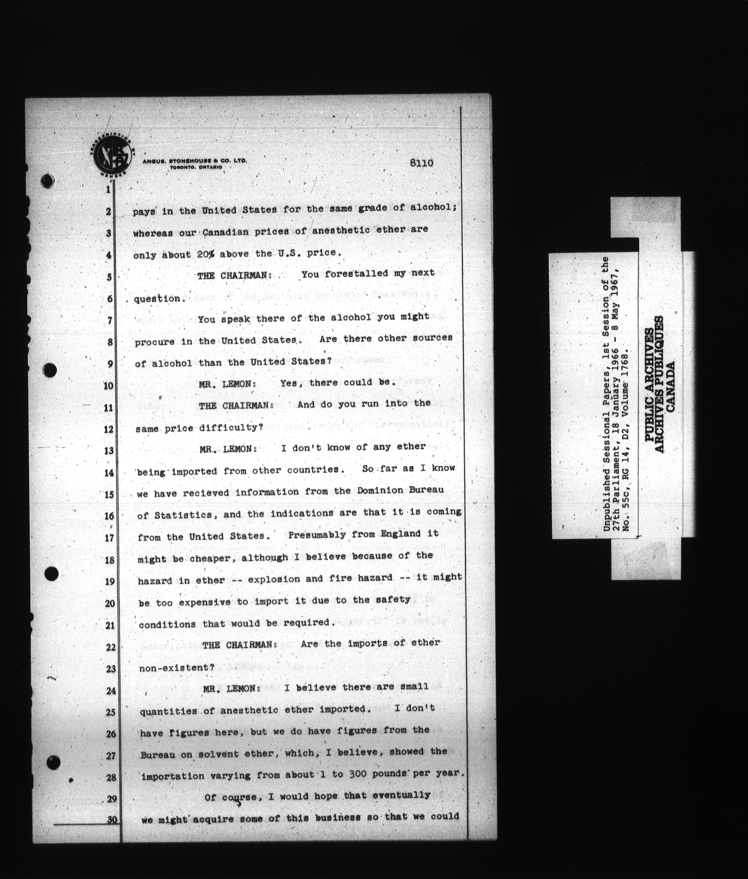 Unpublished sessional papers, 1st Session, 27th Parliament - 3700