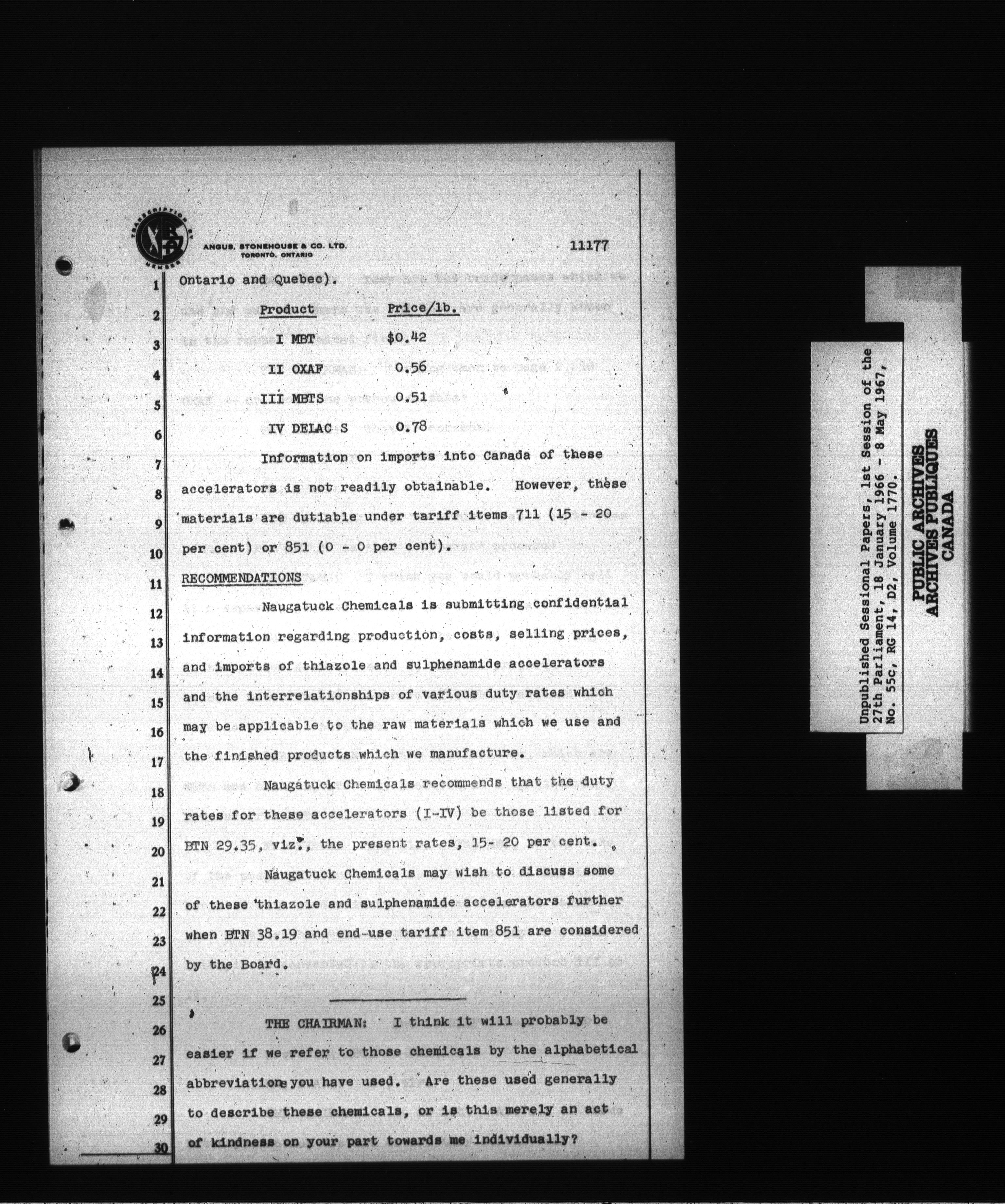 Unpublished sessional papers, 1st Session, 27th Parliament - 3701