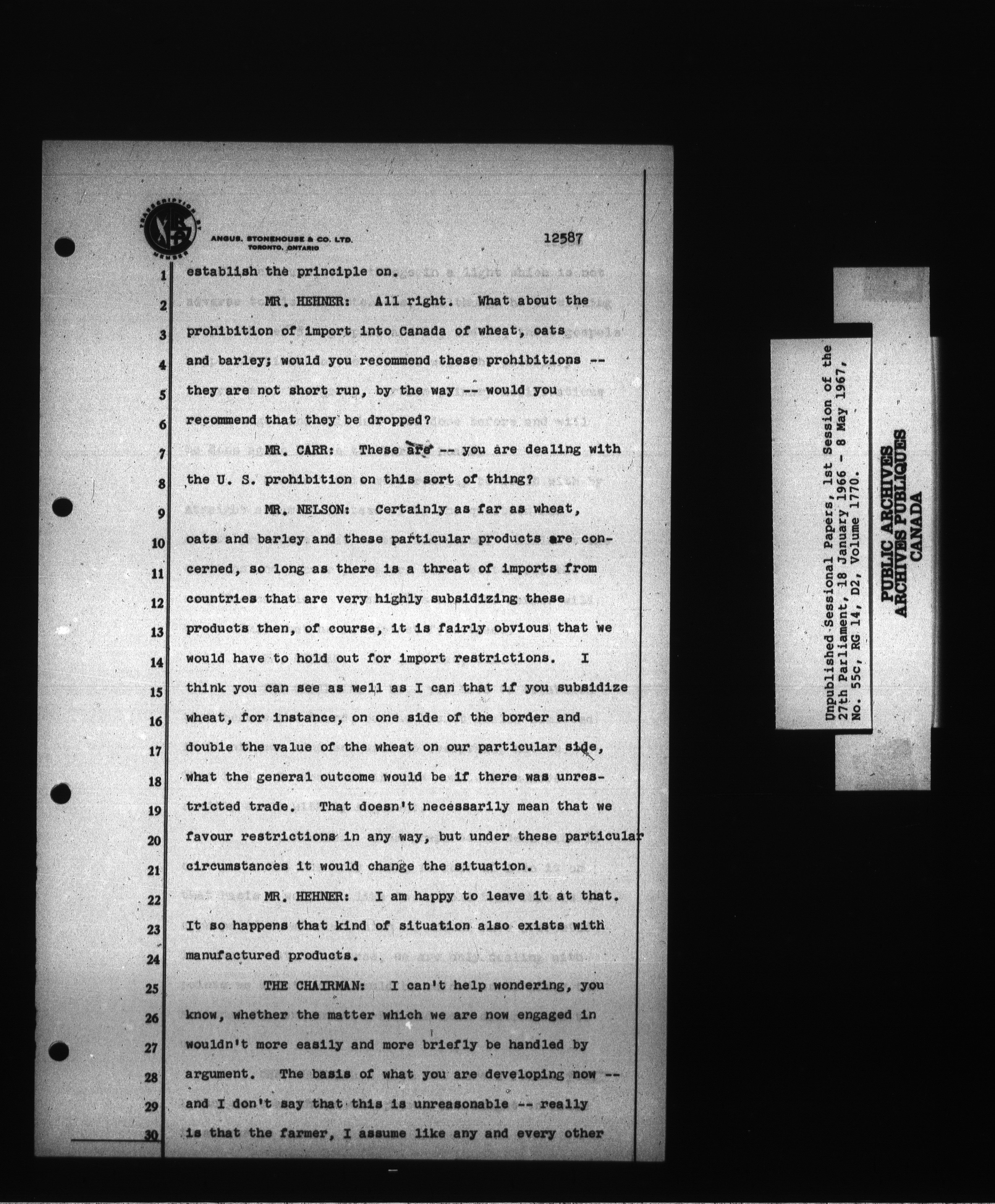 Unpublished sessional papers, 1st Session, 27th Parliament - 3701