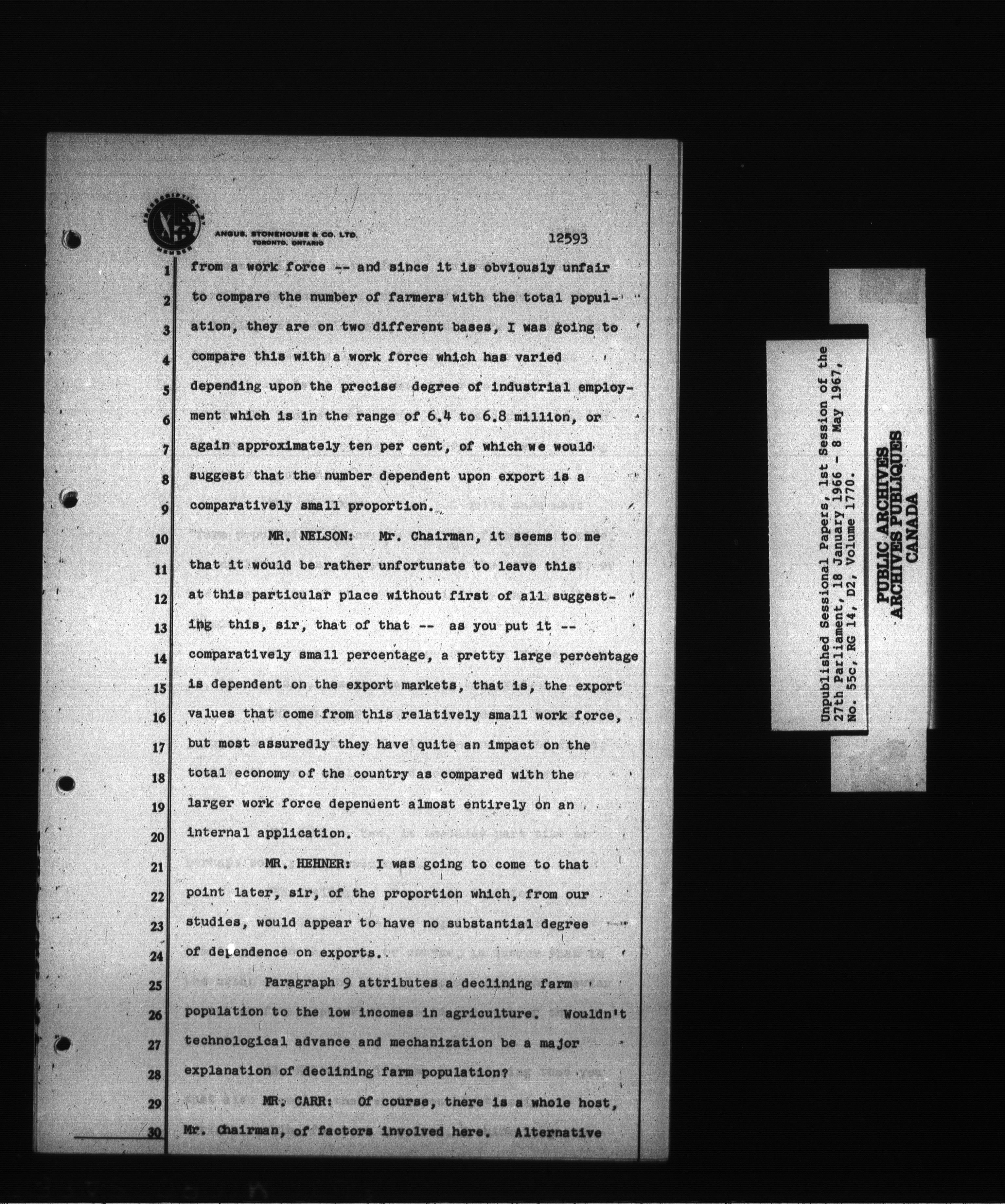 Unpublished sessional papers, 1st Session, 27th Parliament - 3701