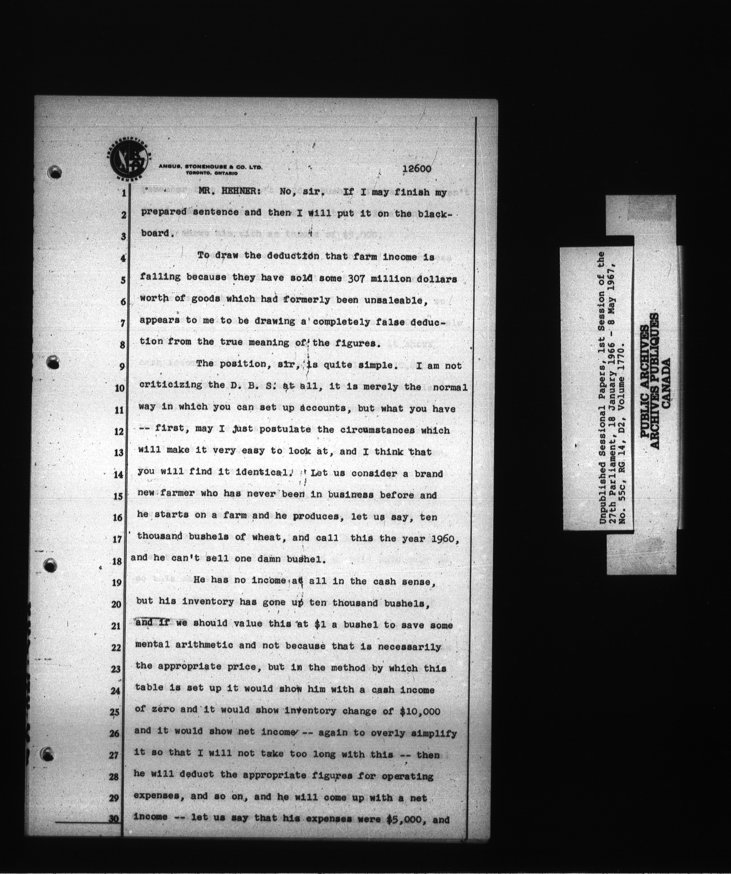 Unpublished sessional papers, 1st Session, 27th Parliament - 3701