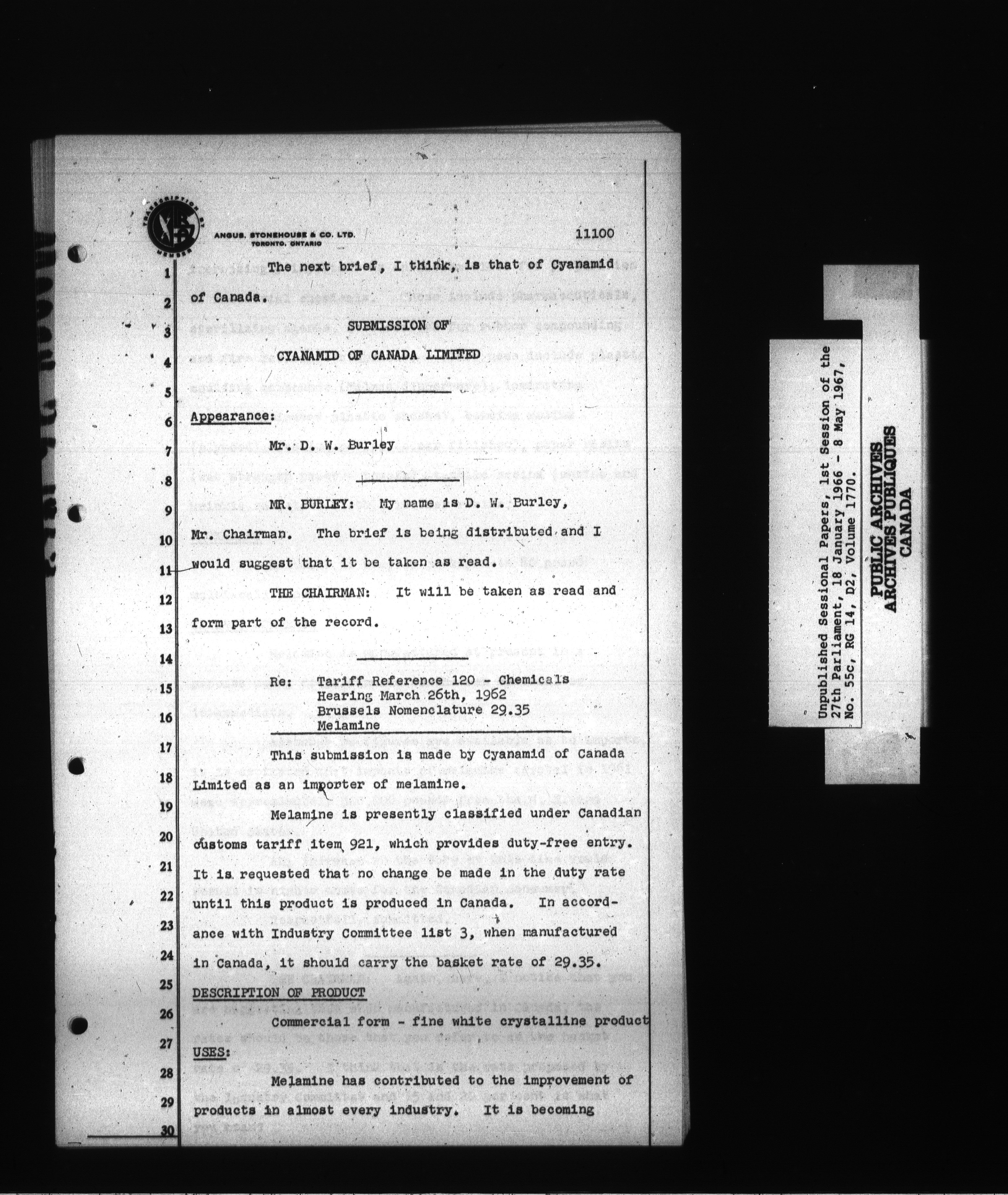 Unpublished sessional papers, 1st Session, 27th Parliament - 3701