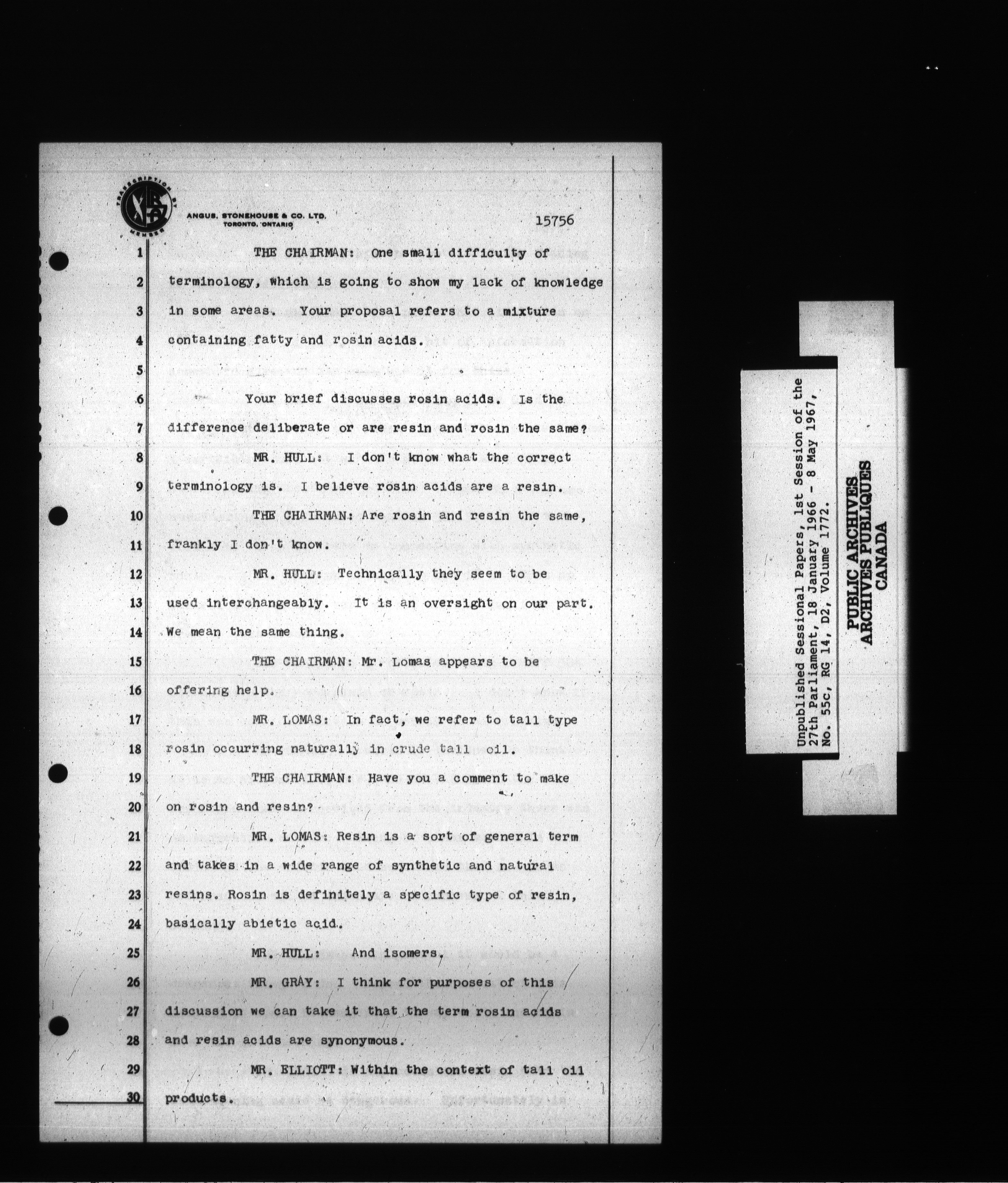Unpublished sessional papers, 1st Session, 27th Parliament - 3703