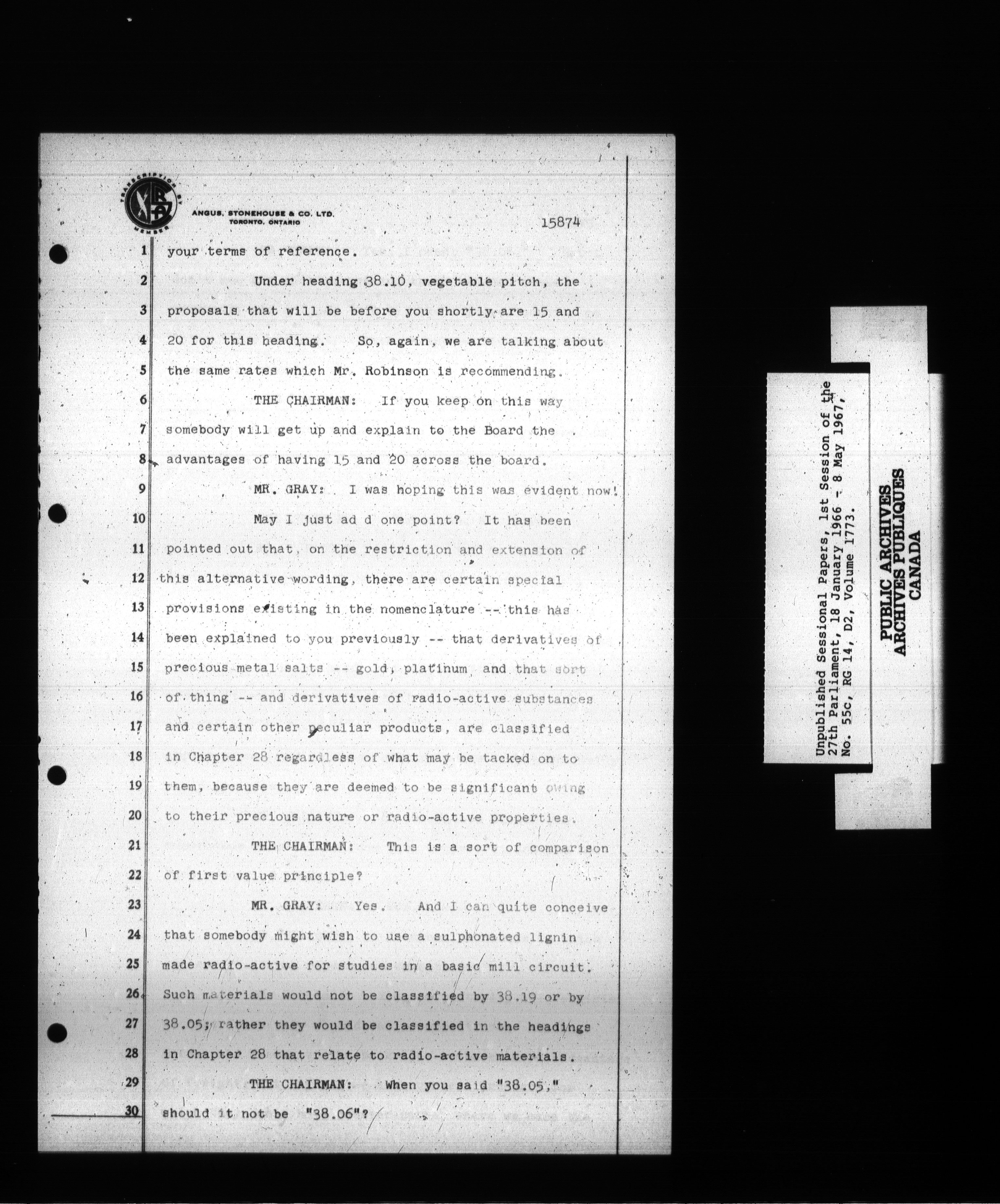 Unpublished sessional papers, 1st Session, 27th Parliament - 3704