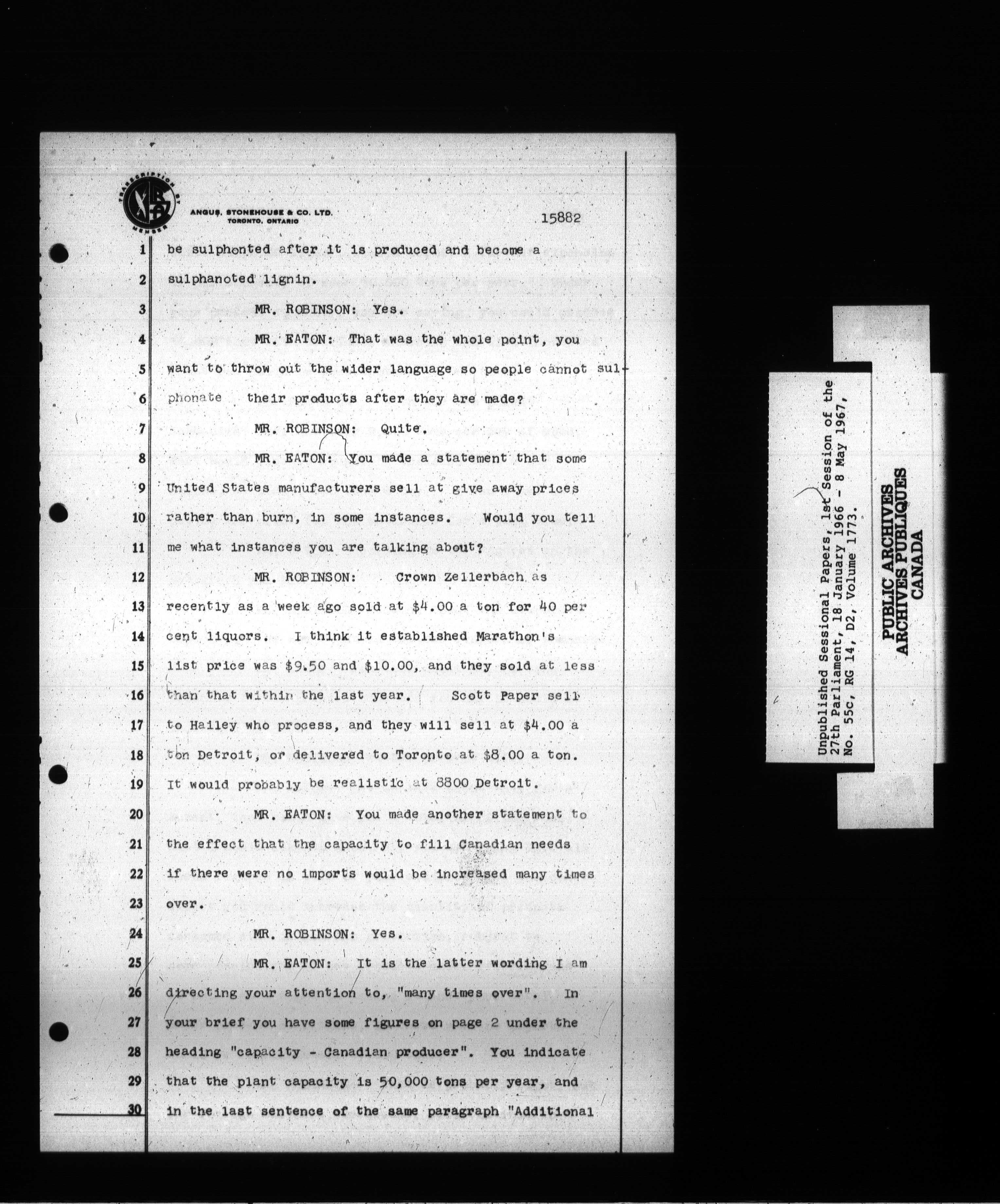 Unpublished sessional papers, 1st Session, 27th Parliament - 3704