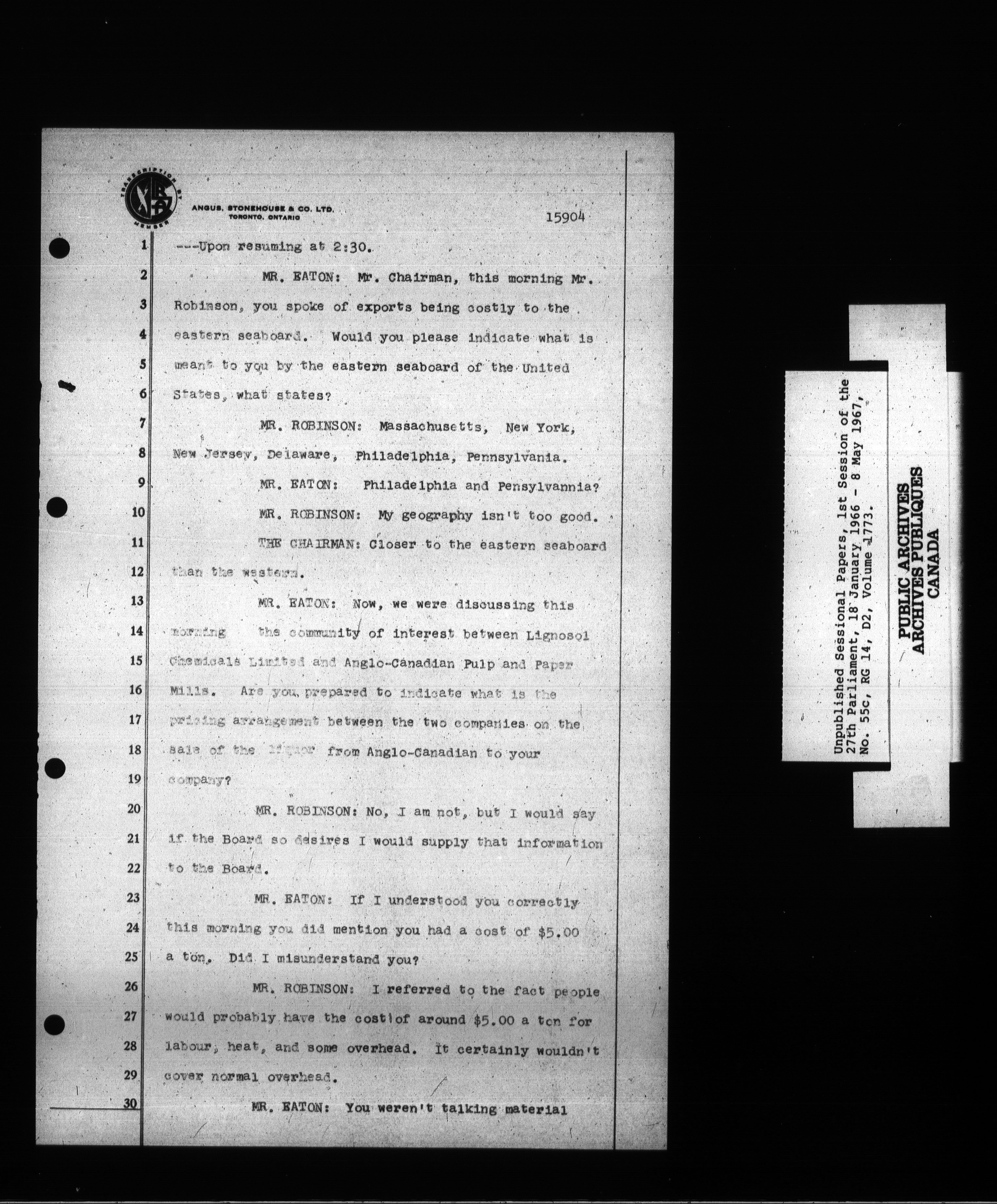 Unpublished sessional papers, 1st Session, 27th Parliament - 3704