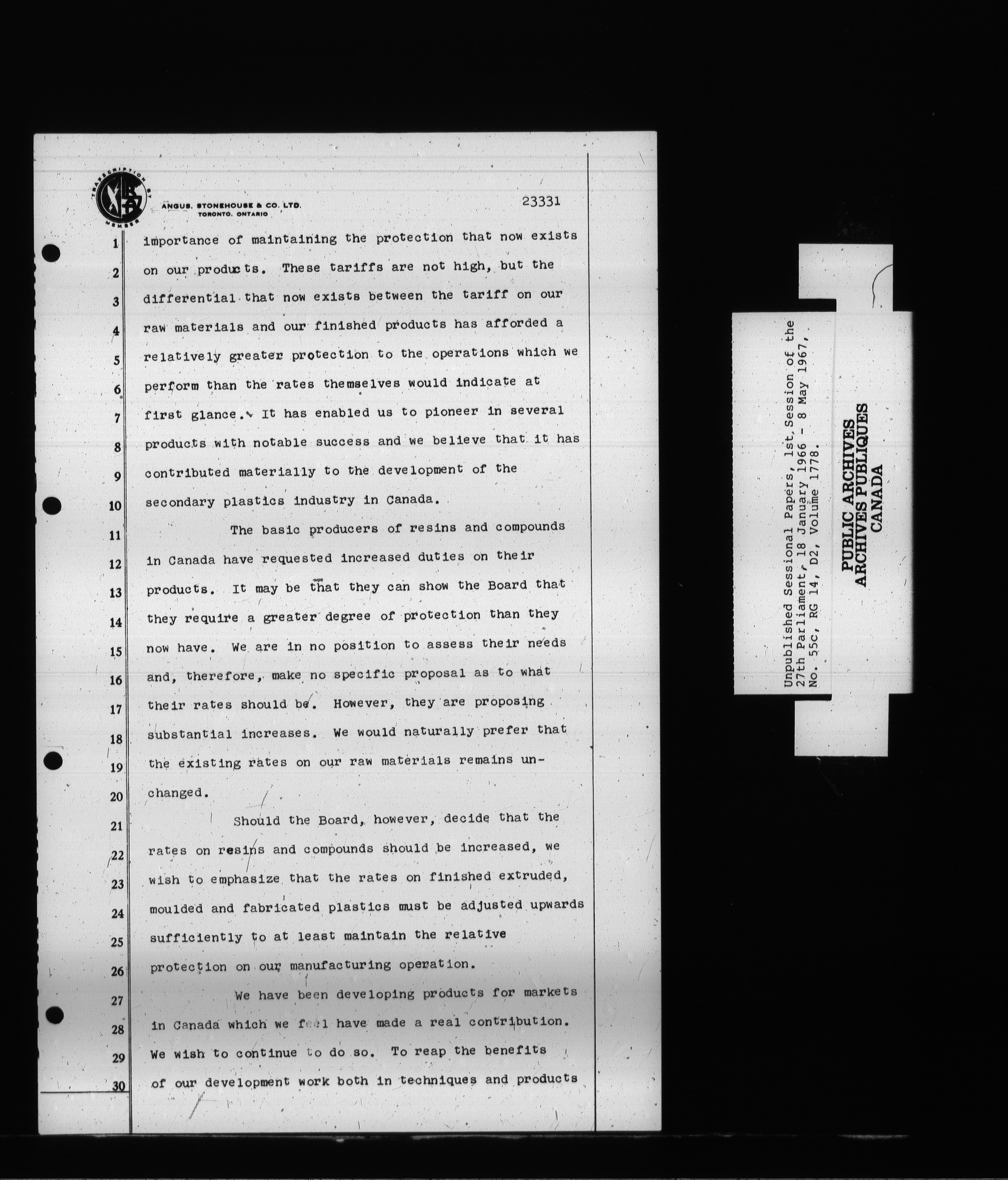 Unpublished sessional papers, 1st Session, 27th Parliament - 3707