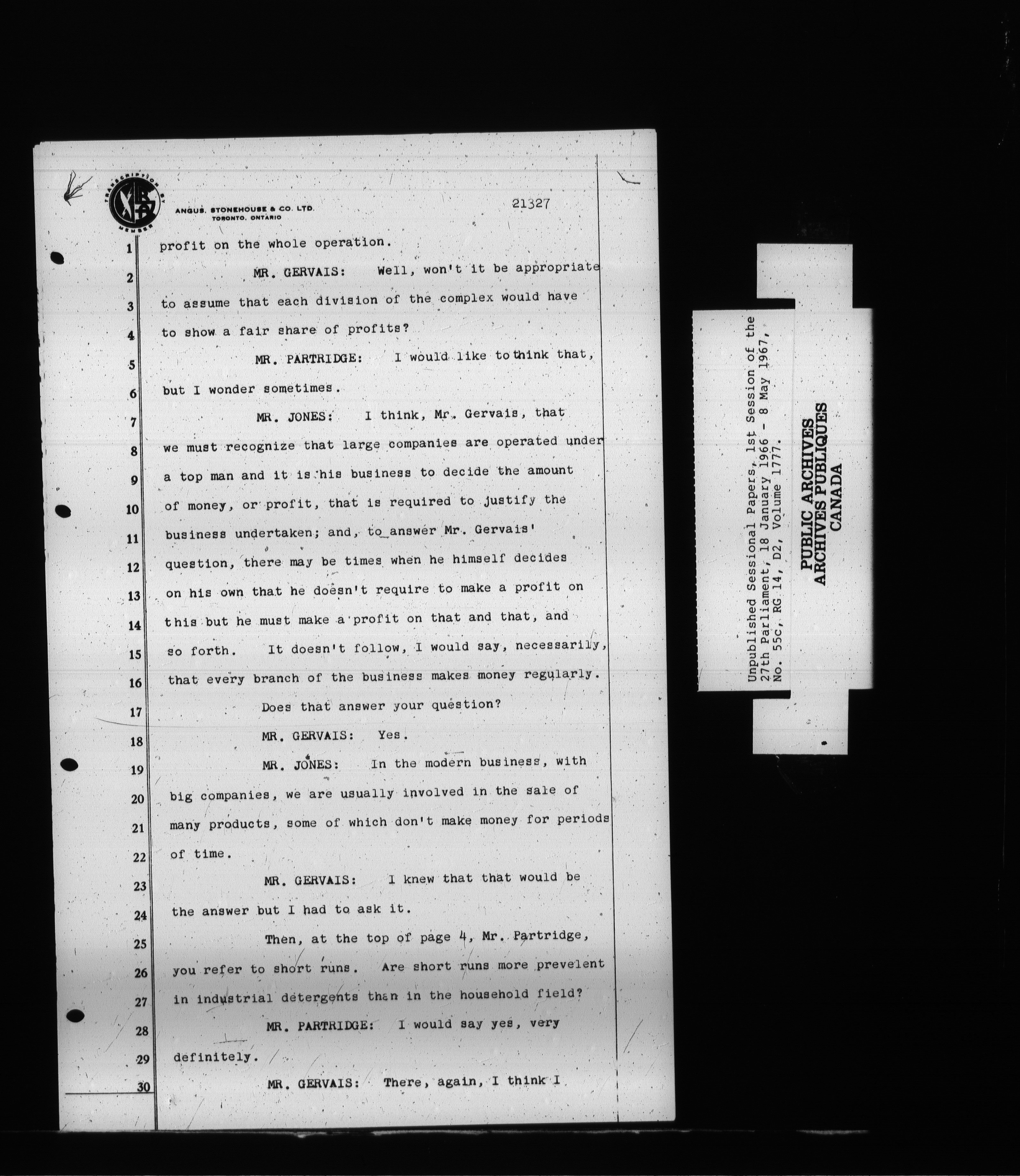 Unpublished sessional papers, 1st Session, 27th Parliament - 3707