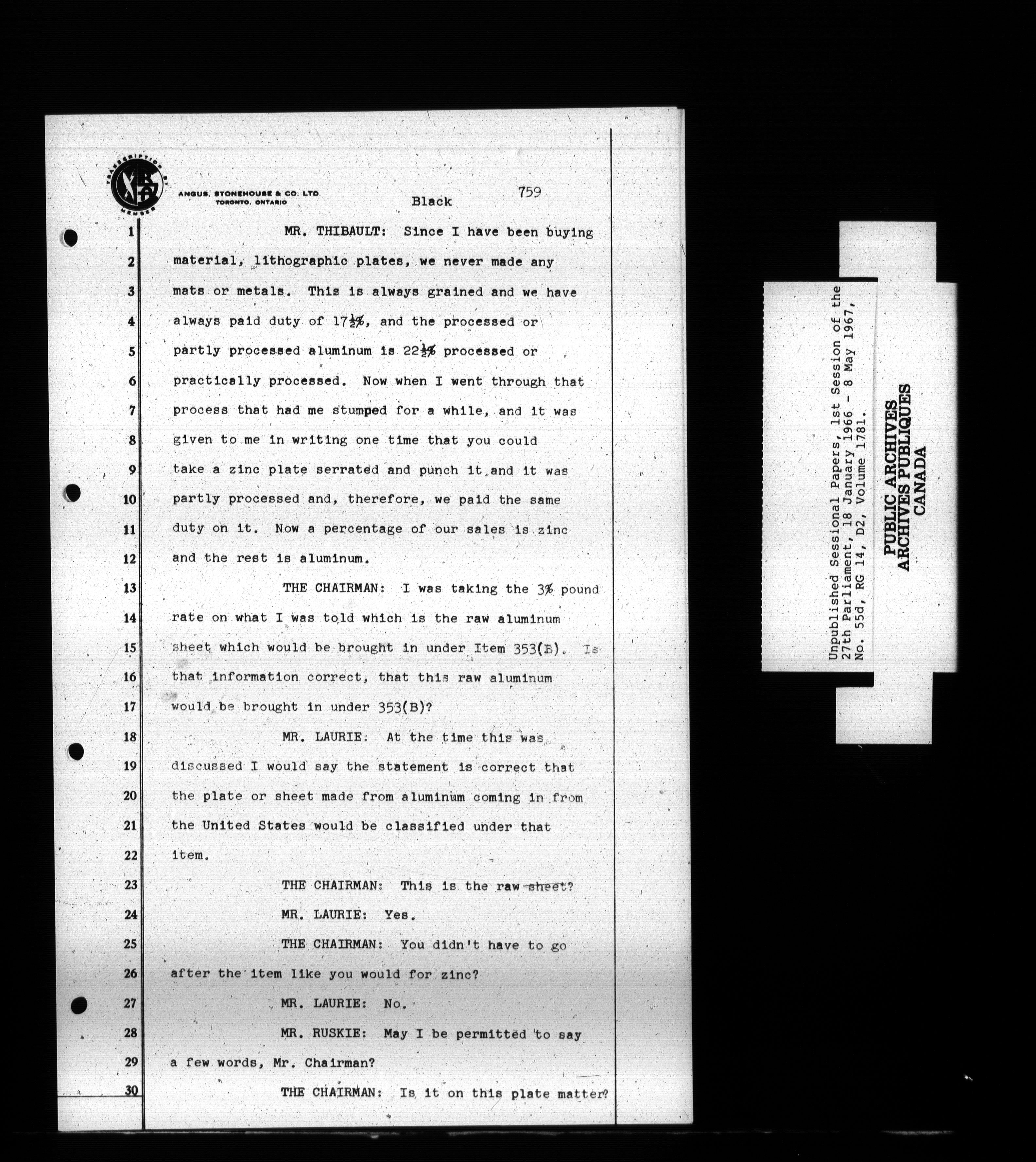 Unpublished sessional papers, 1st Session, 27th Parliament - 3709
