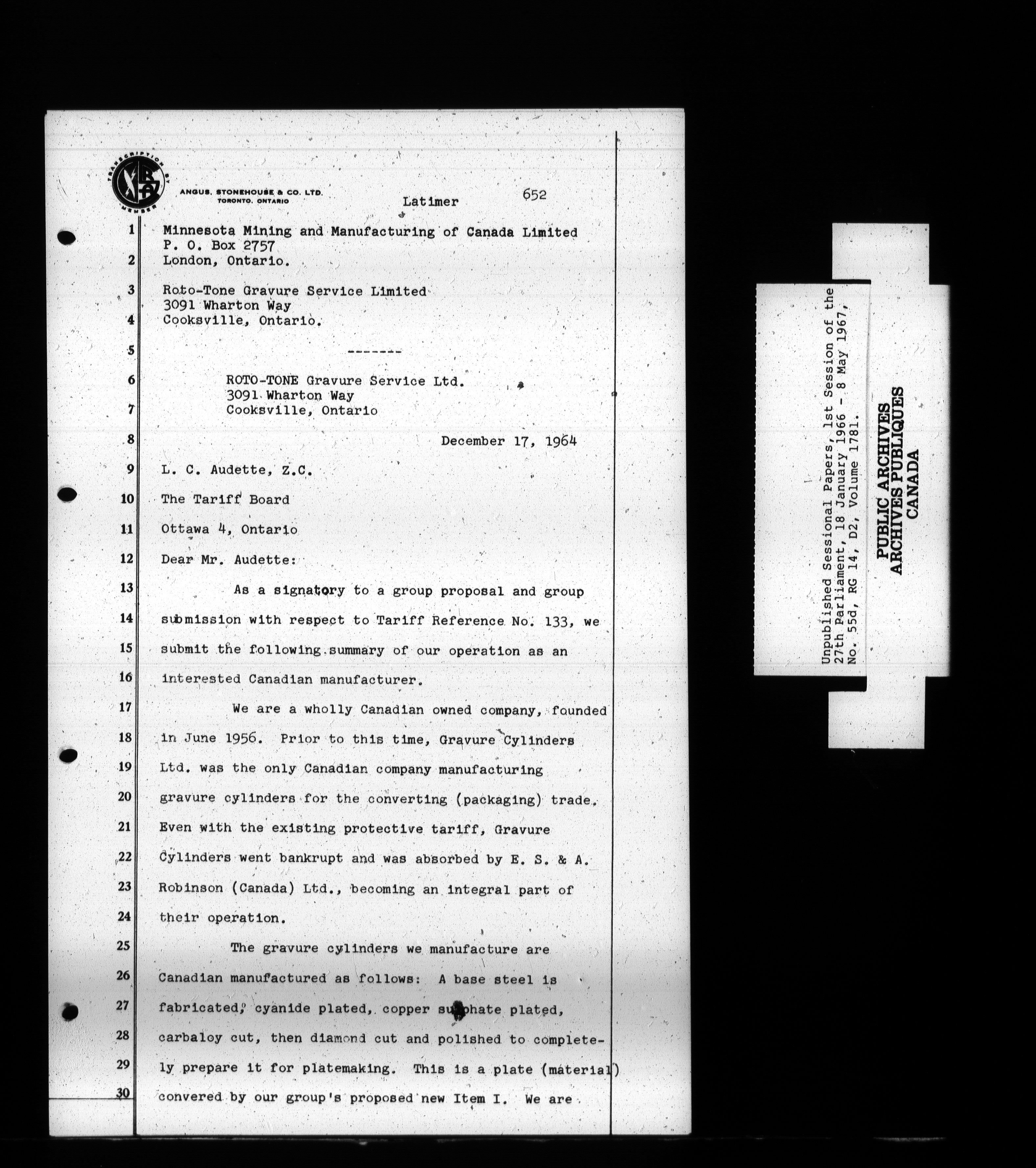 Unpublished sessional papers, 1st Session, 27th Parliament - 3709