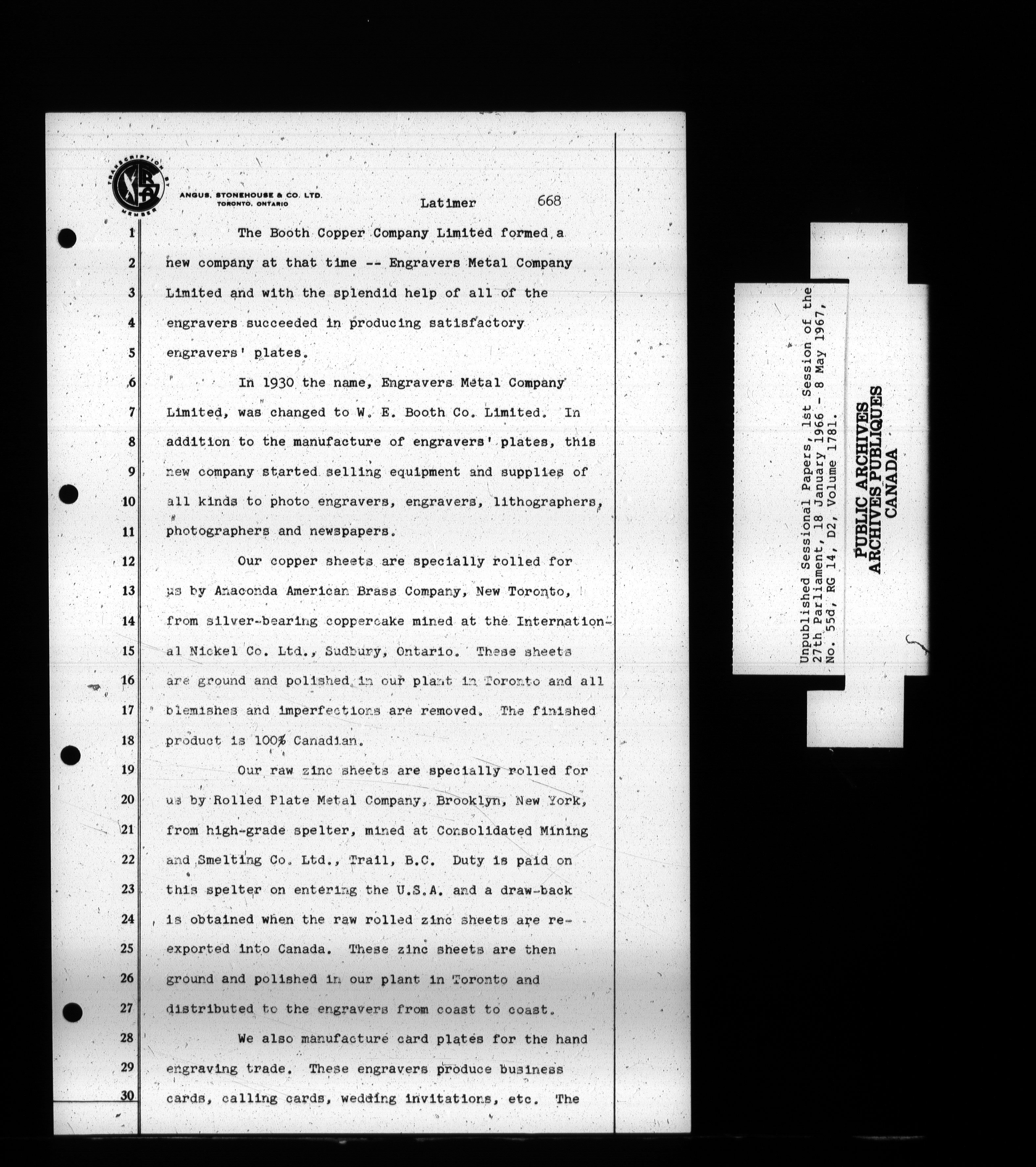 Unpublished sessional papers, 1st Session, 27th Parliament - 3709