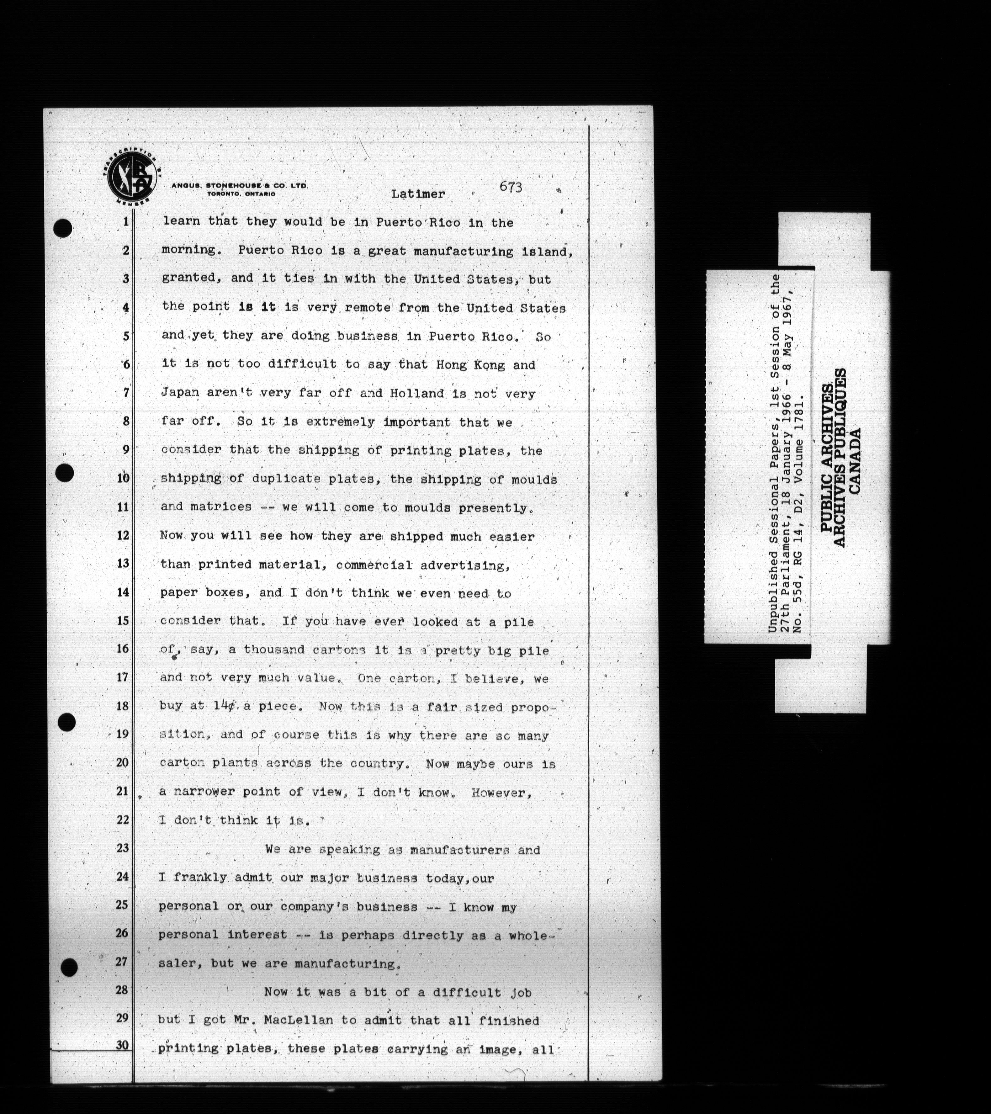 Unpublished sessional papers, 1st Session, 27th Parliament - 3709