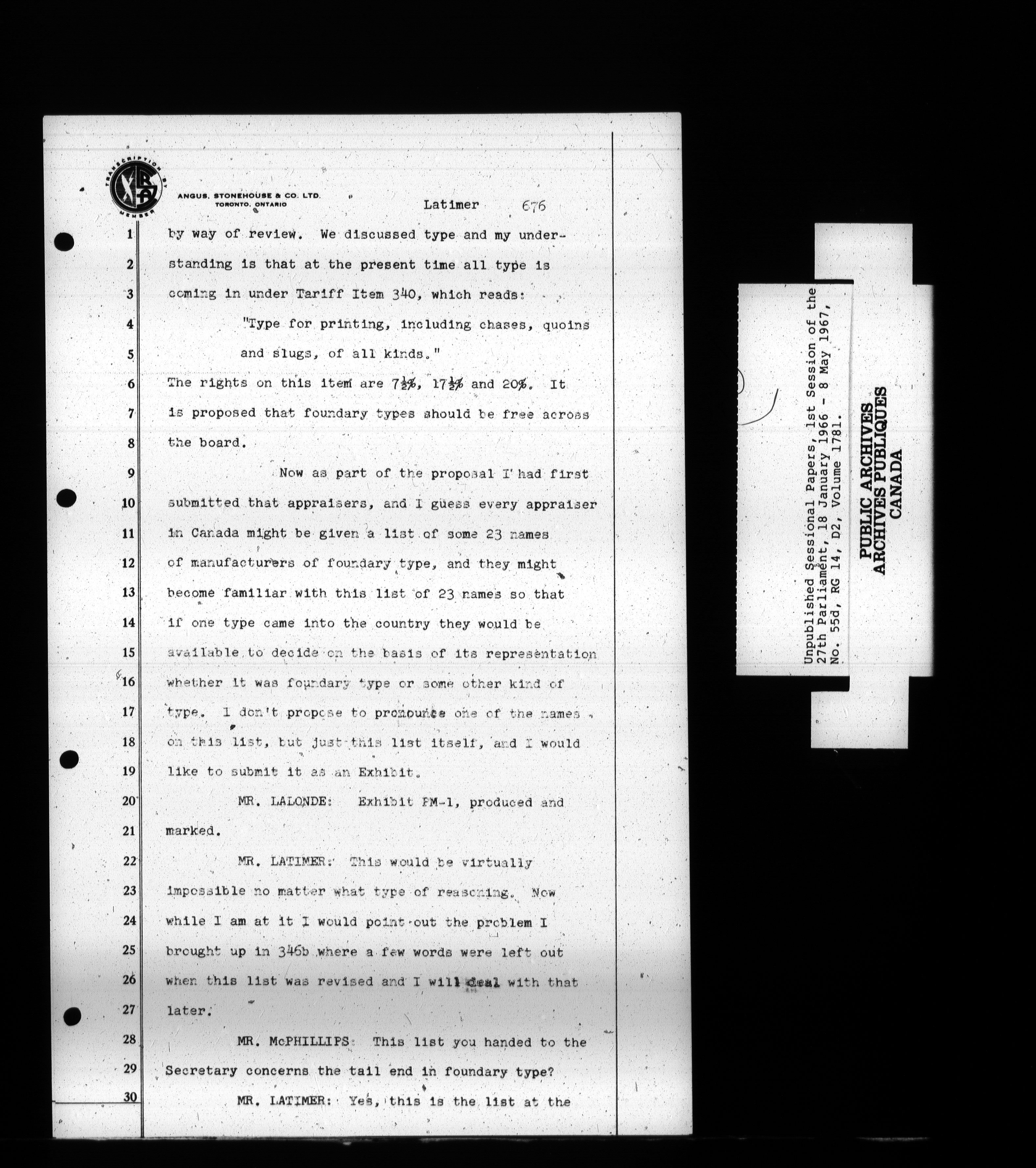 Unpublished sessional papers, 1st Session, 27th Parliament - 3709