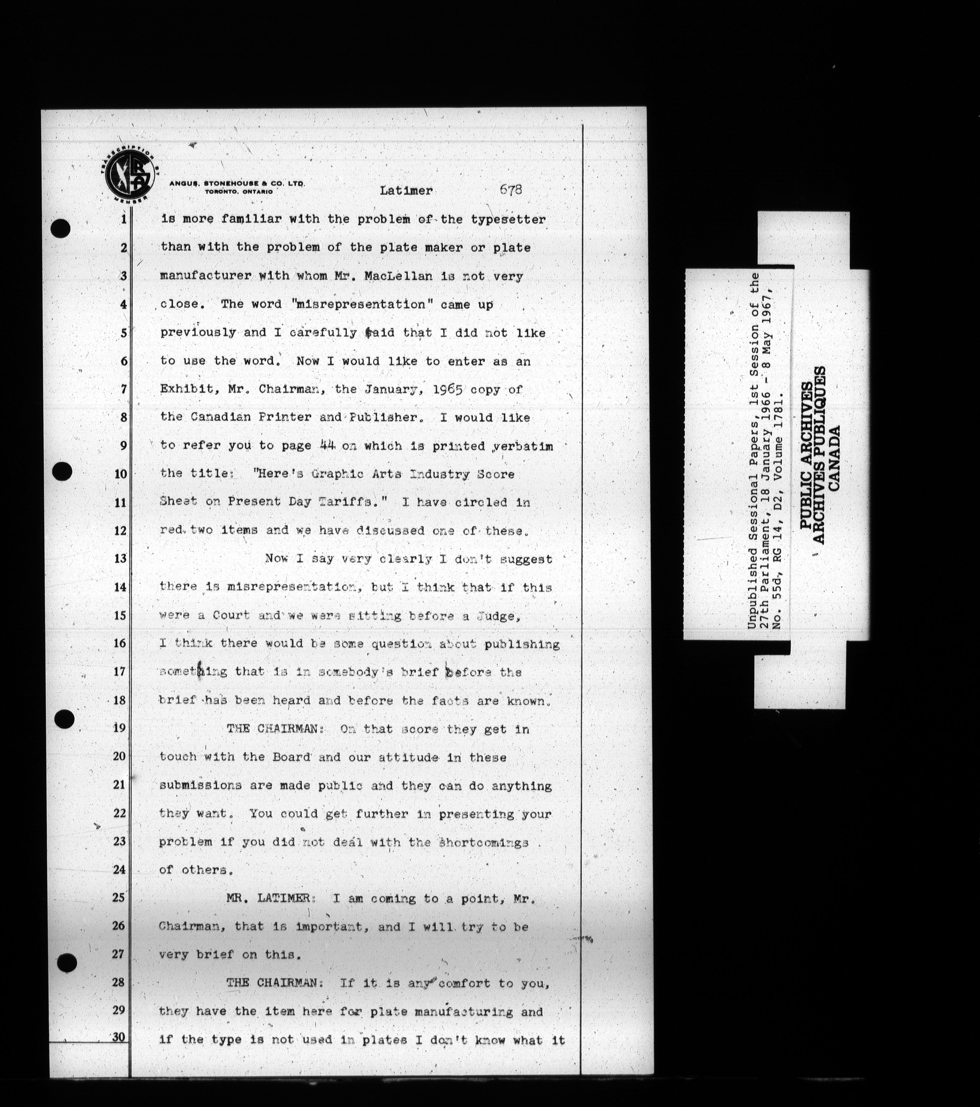 Unpublished sessional papers, 1st Session, 27th Parliament - 3709