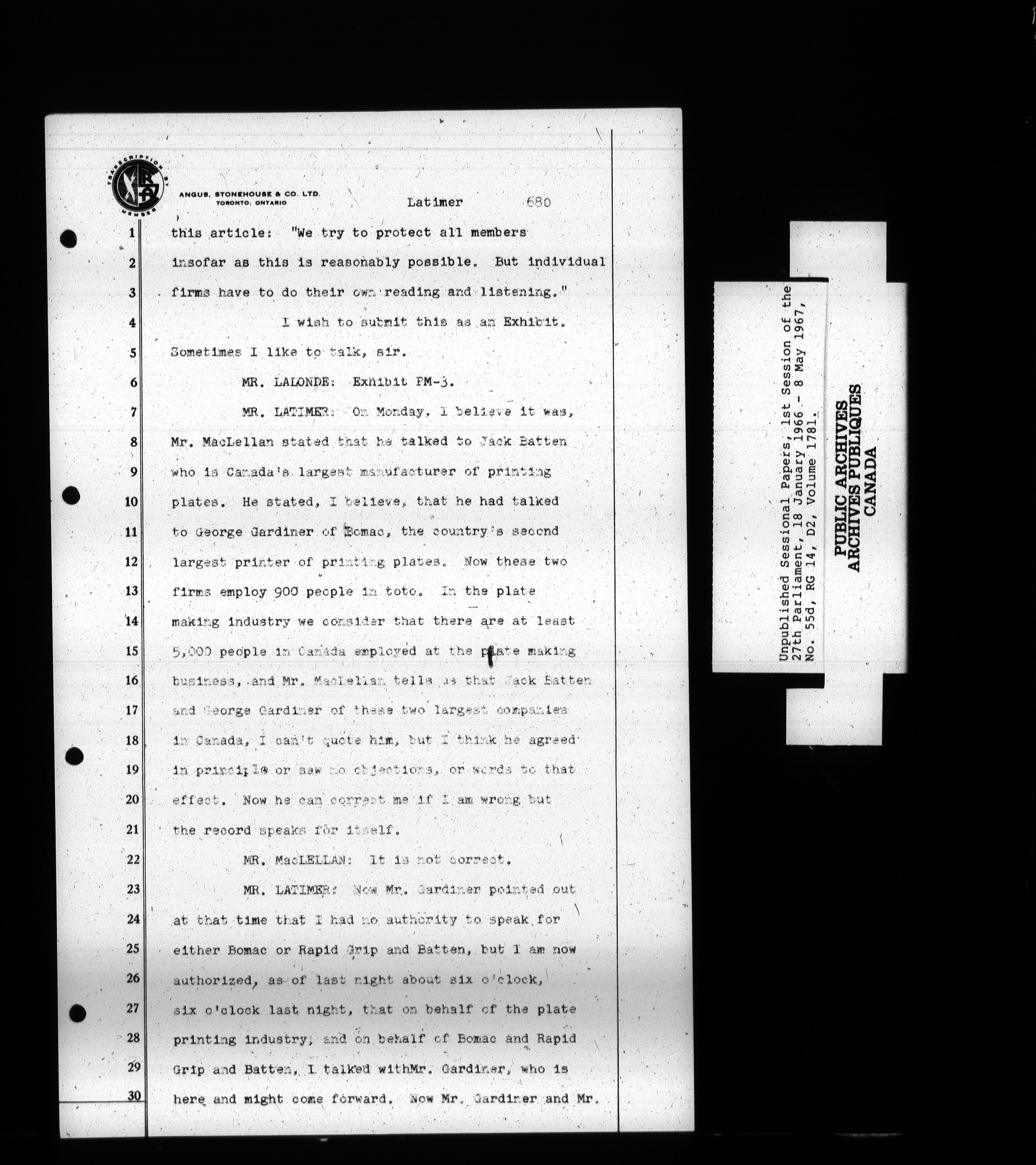 Unpublished sessional papers, 1st Session, 27th Parliament - 3709