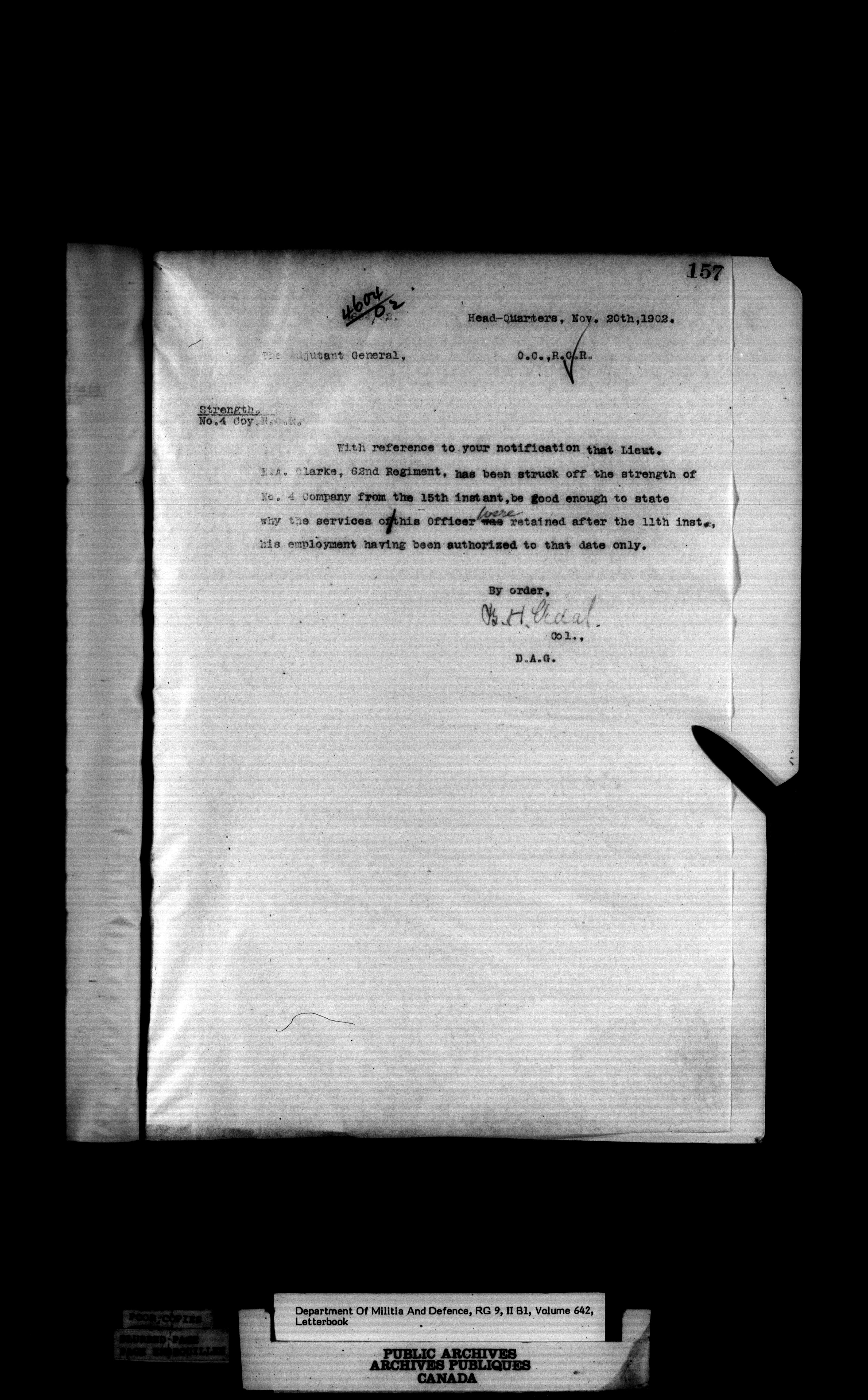 Correspondence of the General Officer Commanding (GOC) of the Canadian Militia and his predecessor, the Adjutant General - 371