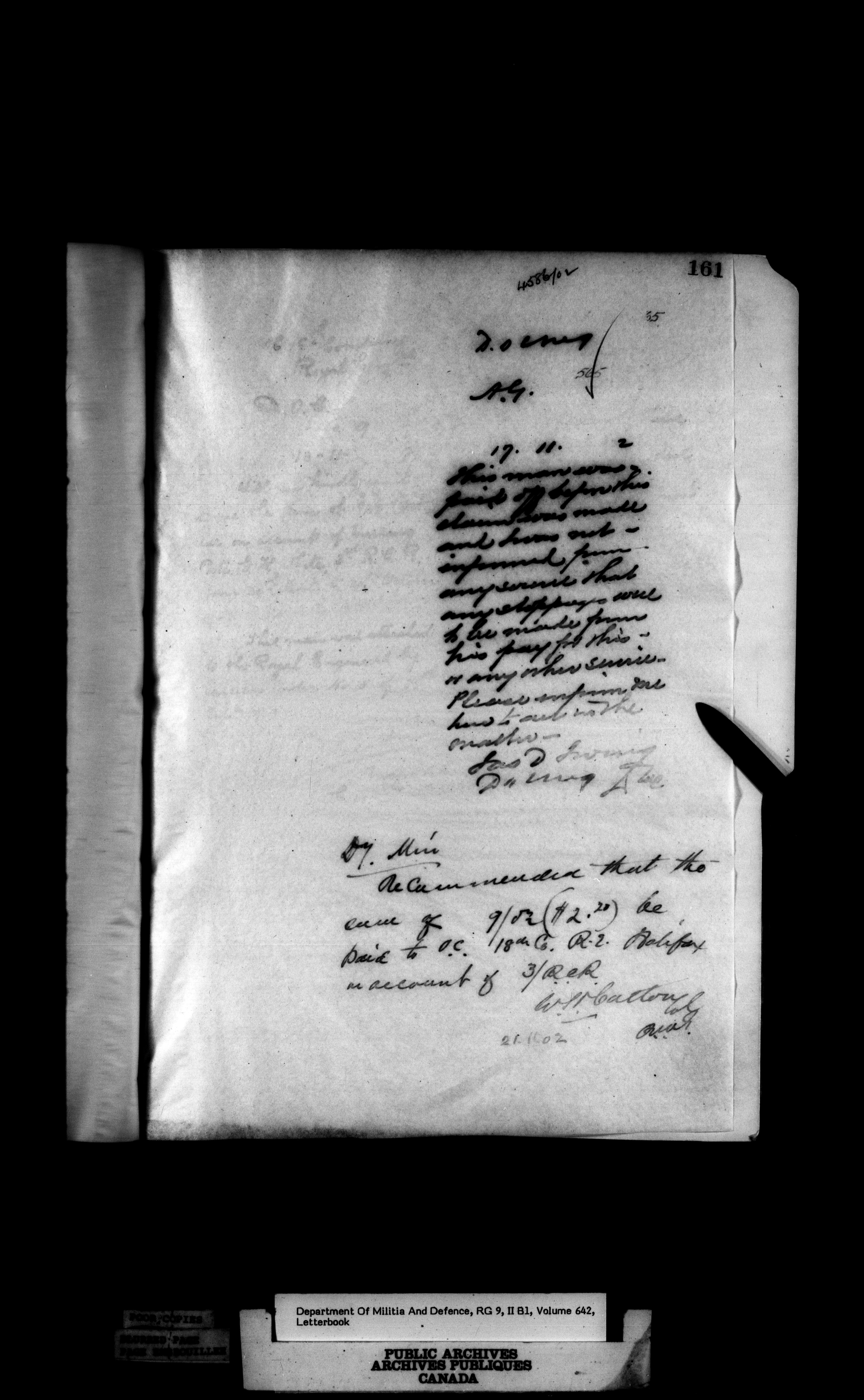 Correspondence of the General Officer Commanding (GOC) of the Canadian Militia and his predecessor, the Adjutant General - 371