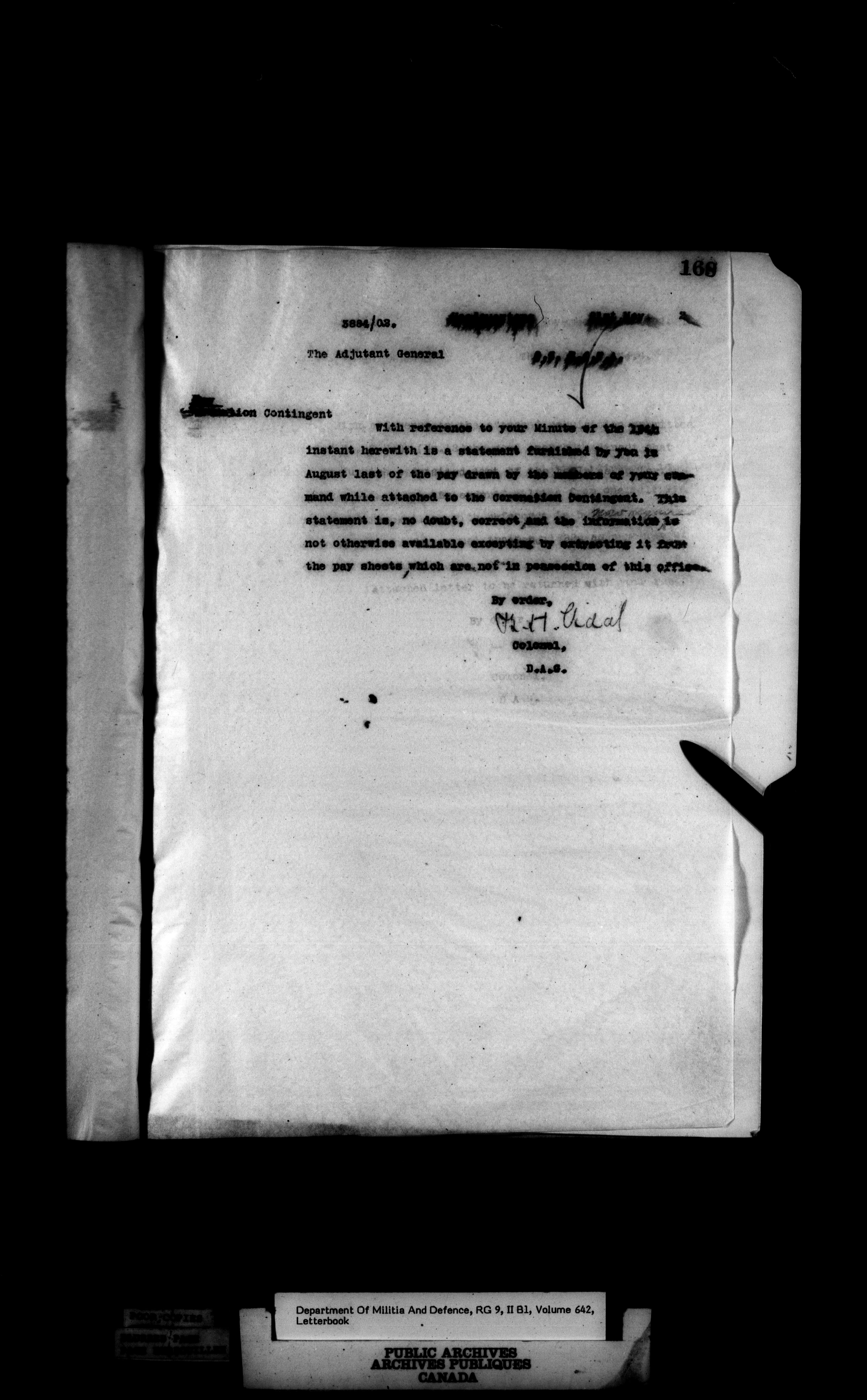 Correspondence of the General Officer Commanding (GOC) of the Canadian Militia and his predecessor, the Adjutant General - 371