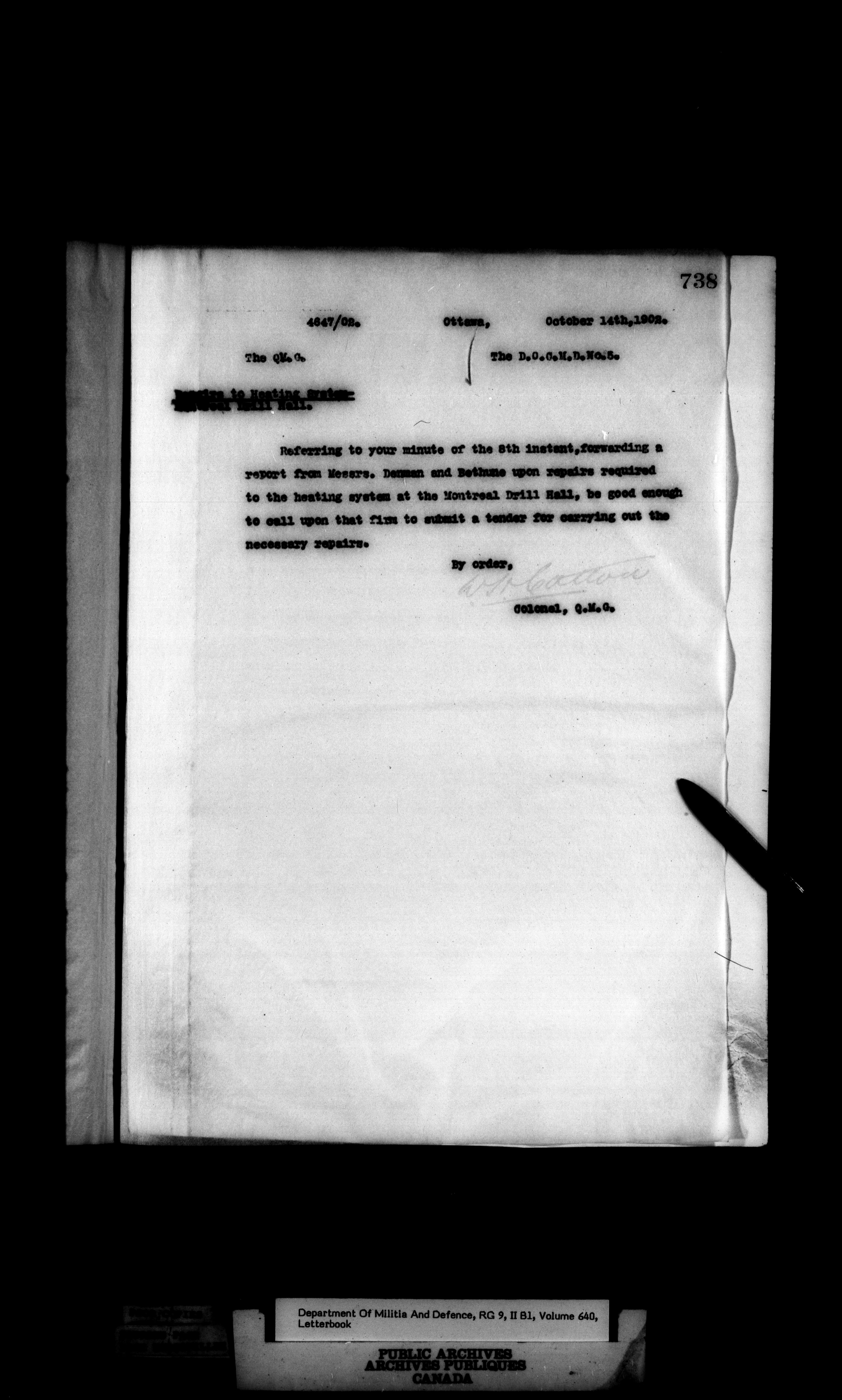 Correspondence of the General Officer Commanding (GOC) of the Canadian Militia and his predecessor, the Adjutant General - 371