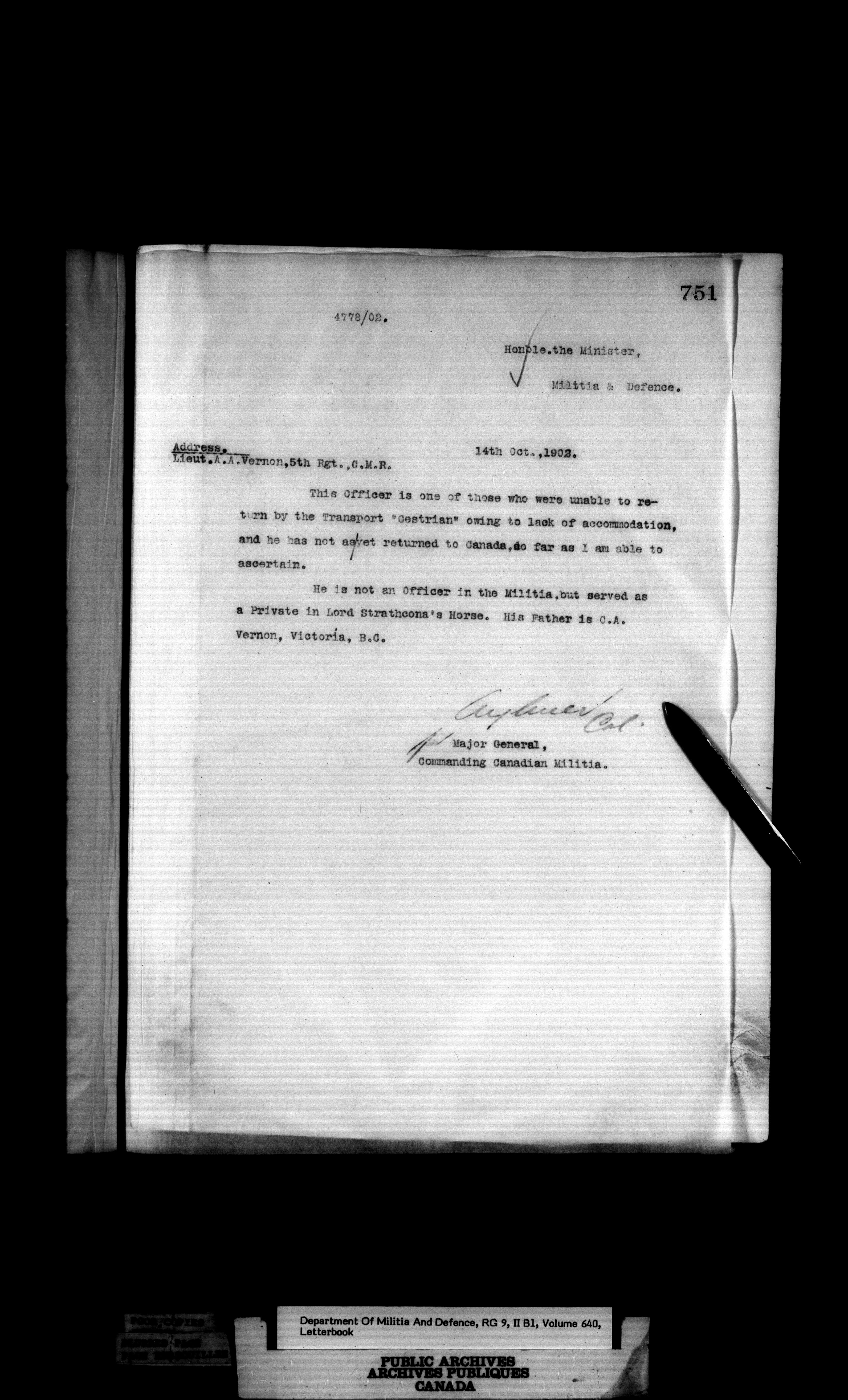 Correspondence of the General Officer Commanding (GOC) of the Canadian Militia and his predecessor, the Adjutant General - 371