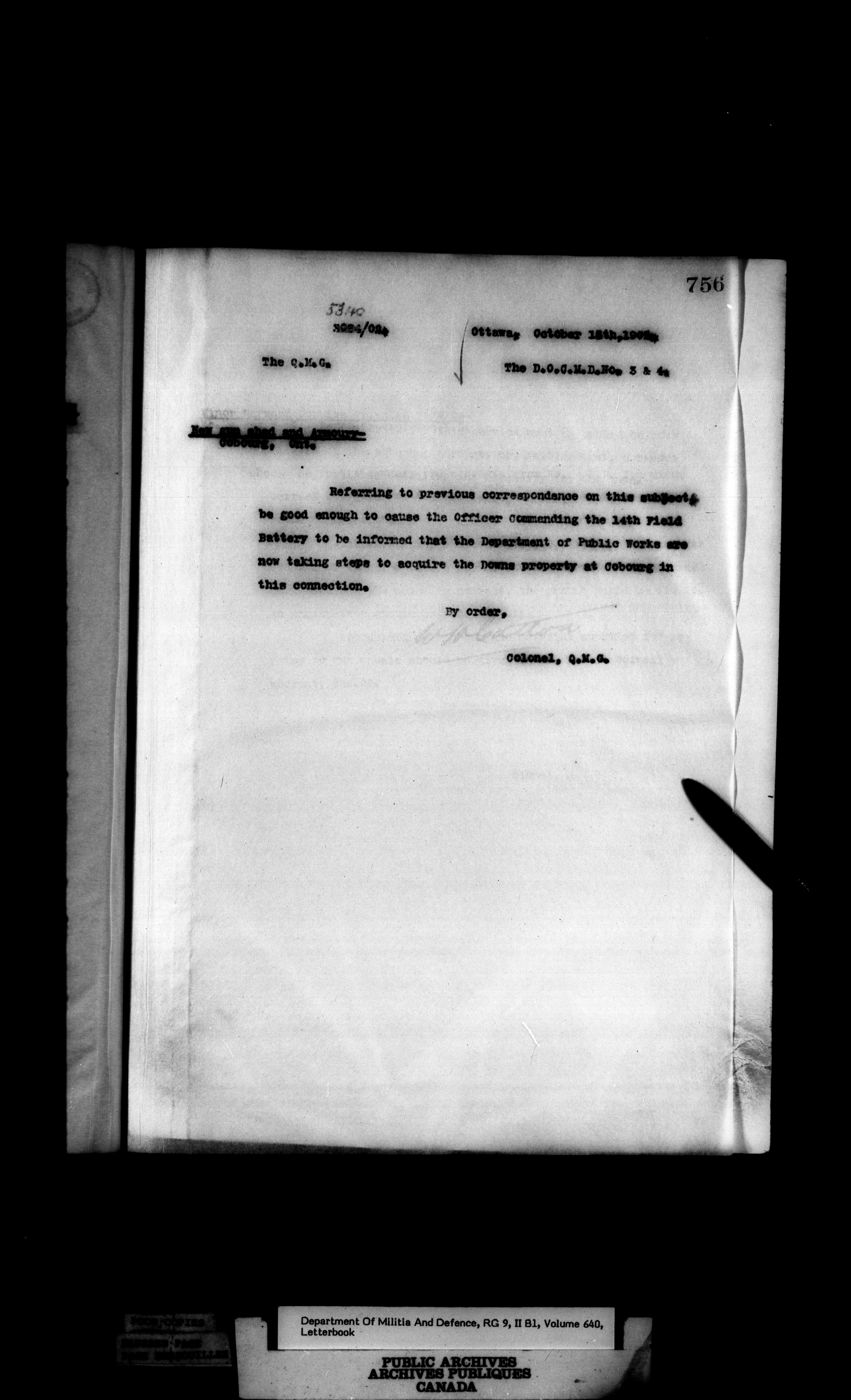 Correspondence of the General Officer Commanding (GOC) of the Canadian Militia and his predecessor, the Adjutant General - 371
