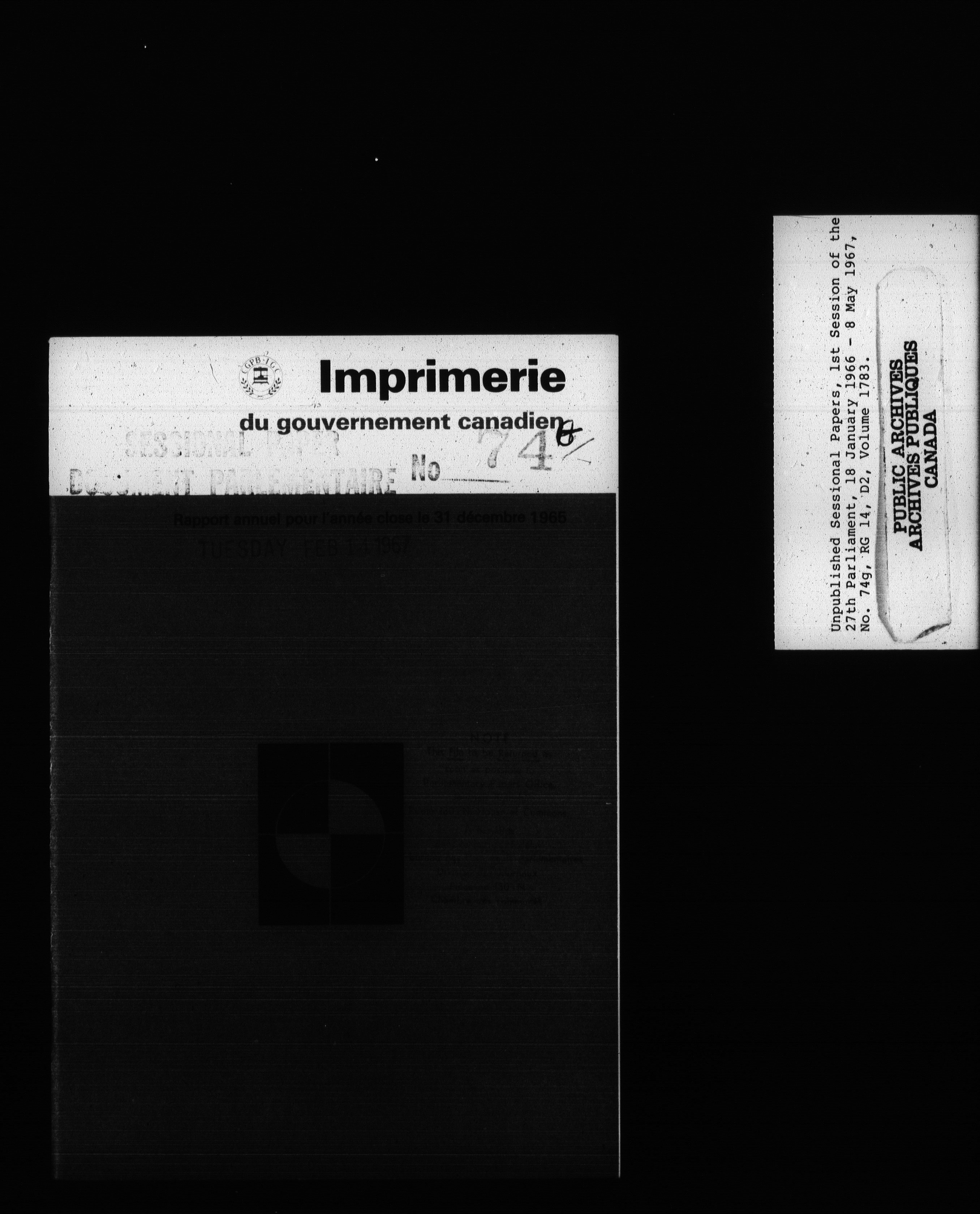 Unpublished sessional papers, 1st Session, 27th Parliament - 3710