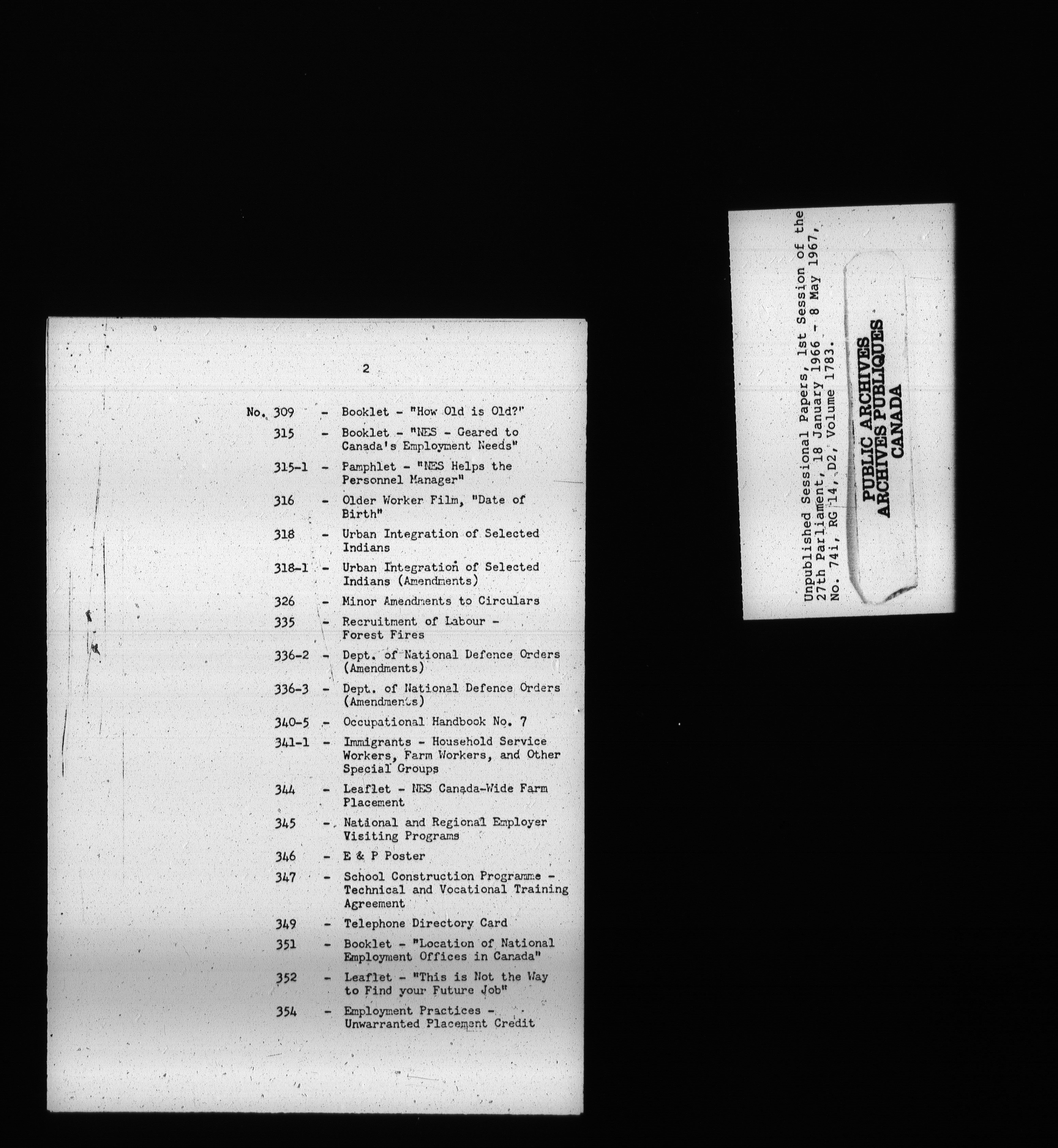 Unpublished sessional papers, 1st Session, 27th Parliament - 3710