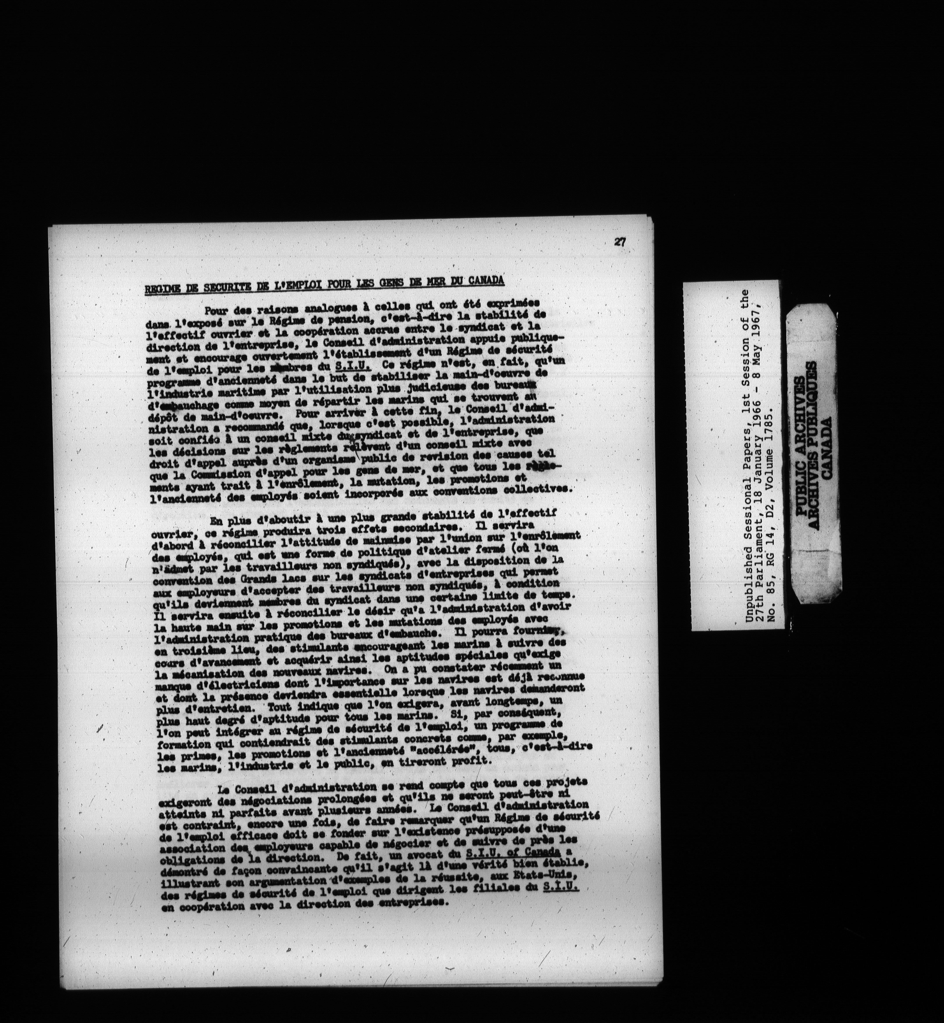 Unpublished sessional papers, 1st Session, 27th Parliament - 3712