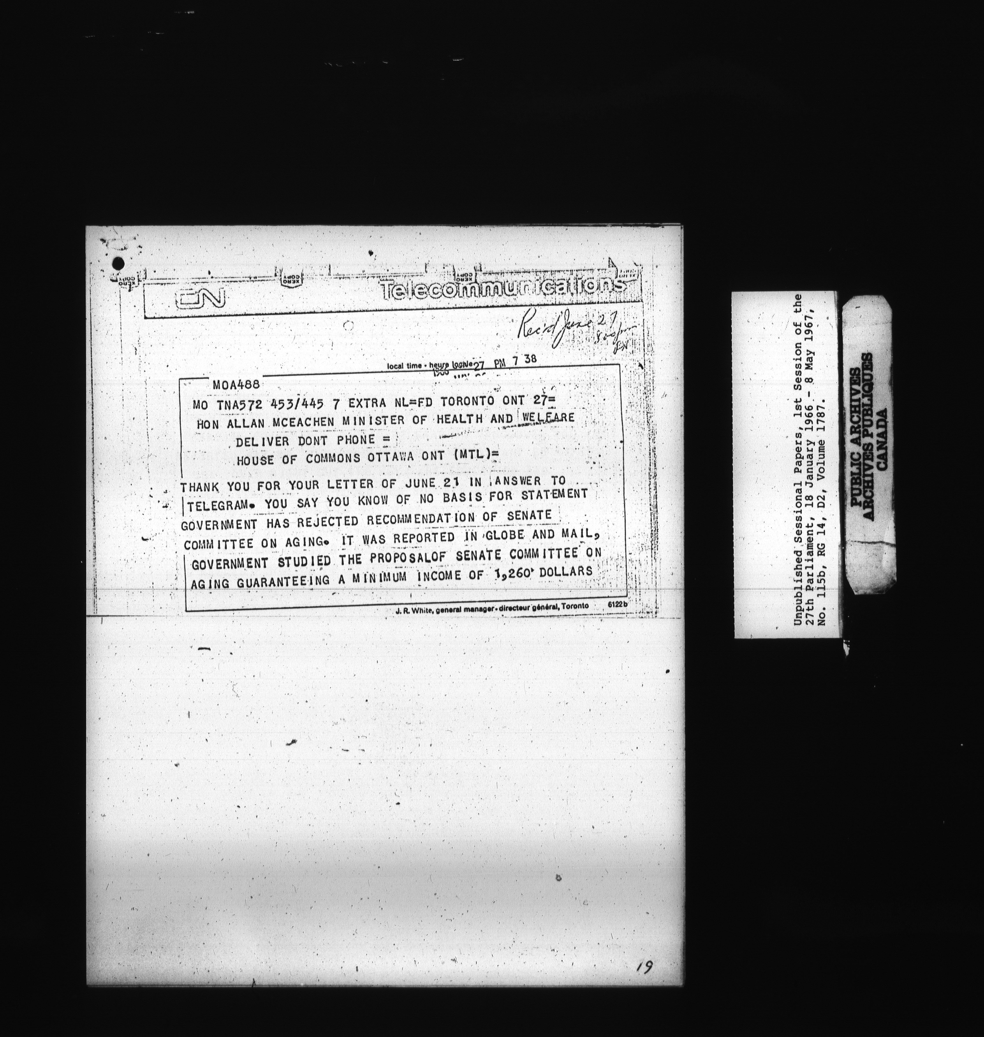 Unpublished sessional papers, 1st Session, 27th Parliament - 3714