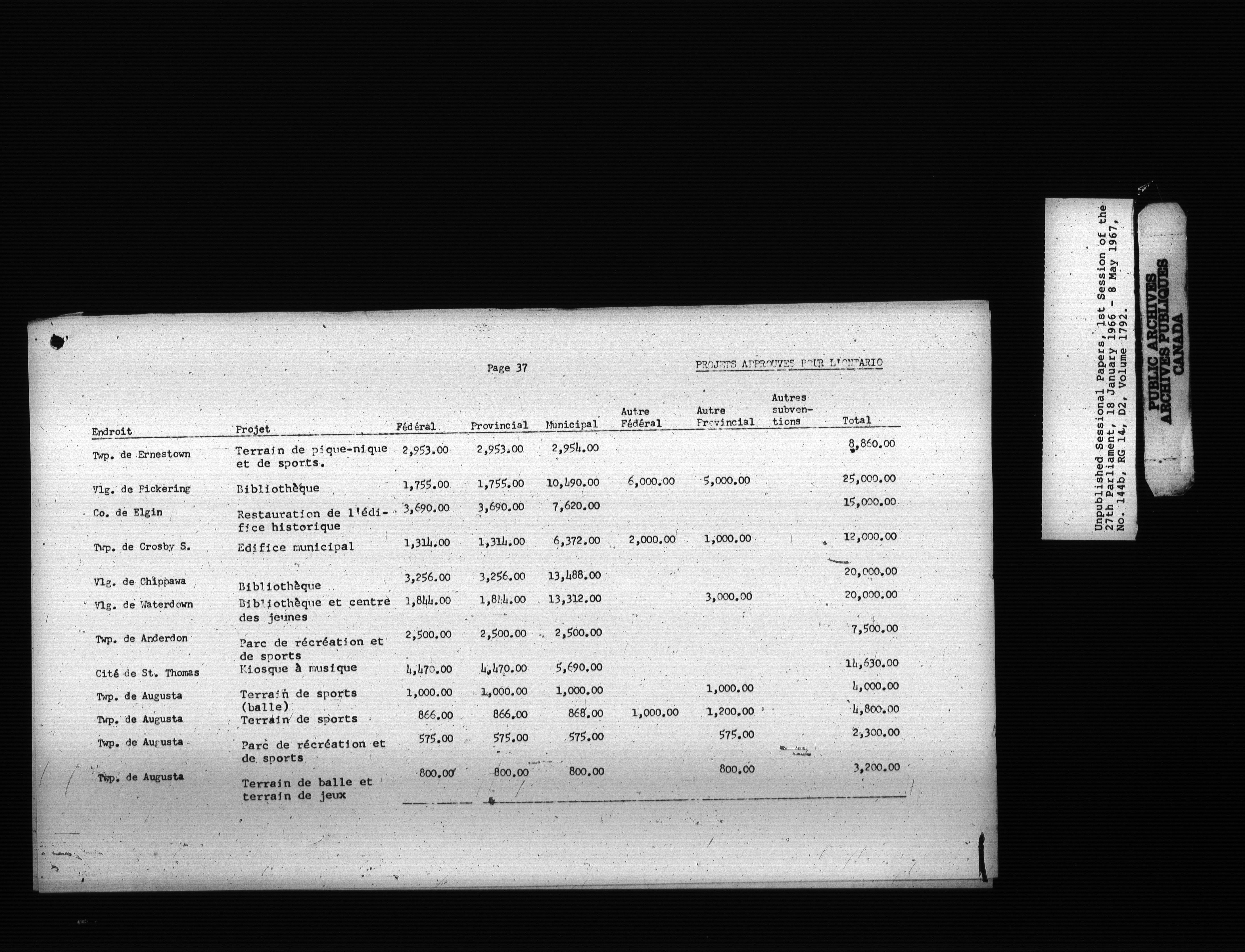 Unpublished sessional papers, 1st Session, 27th Parliament - 3716