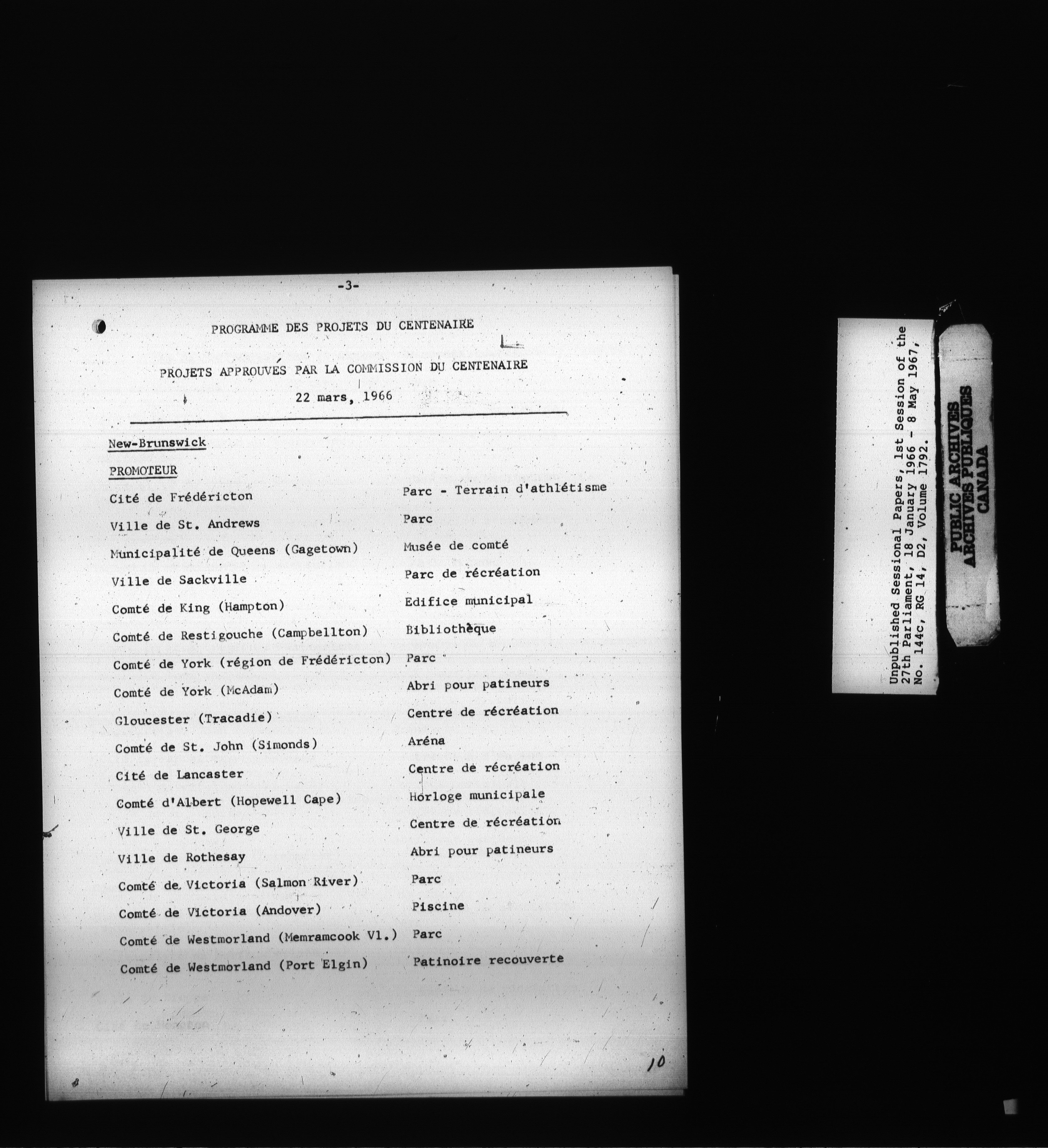 Unpublished sessional papers, 1st Session, 27th Parliament - 3716