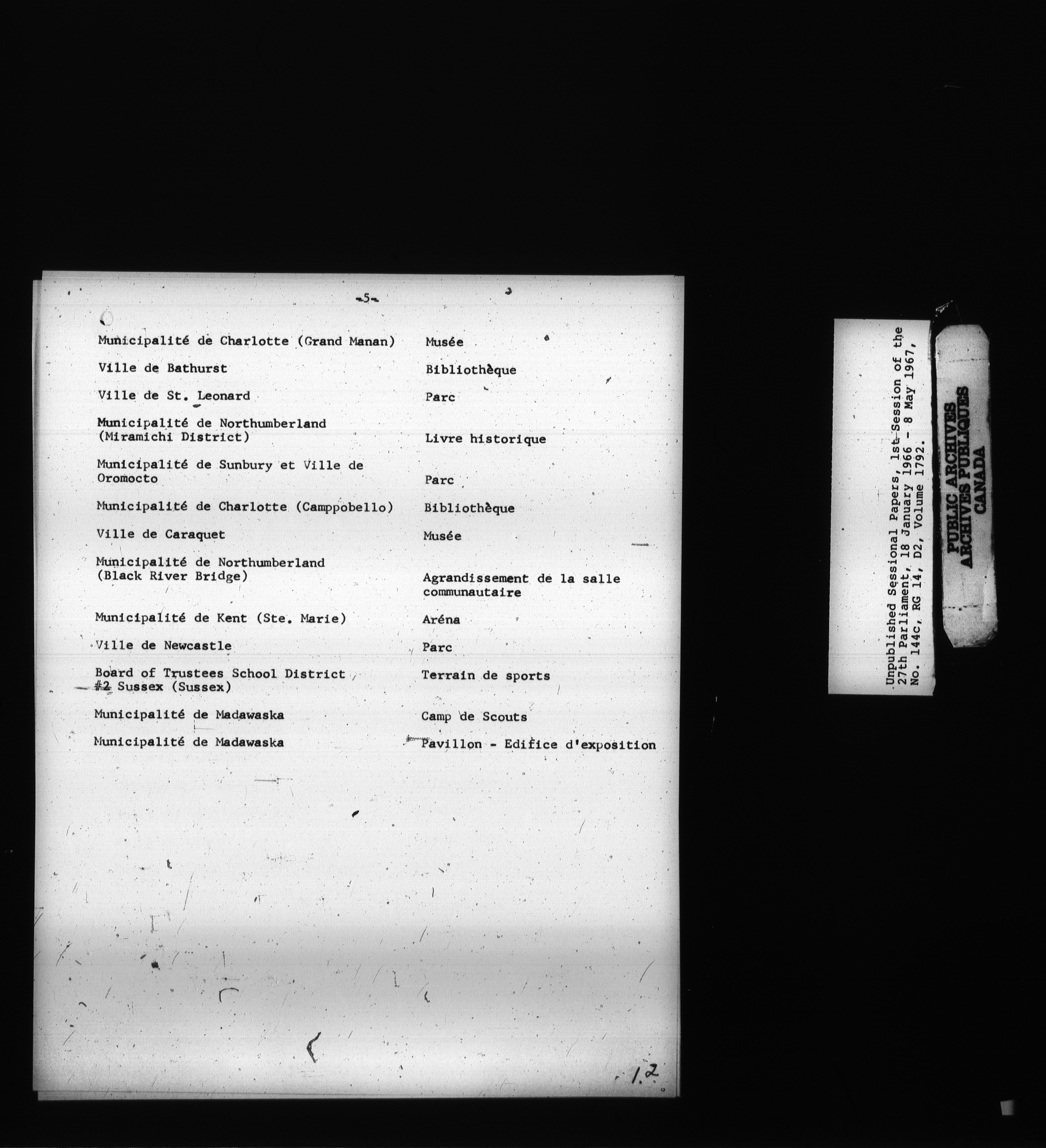 Unpublished sessional papers, 1st Session, 27th Parliament - 3716