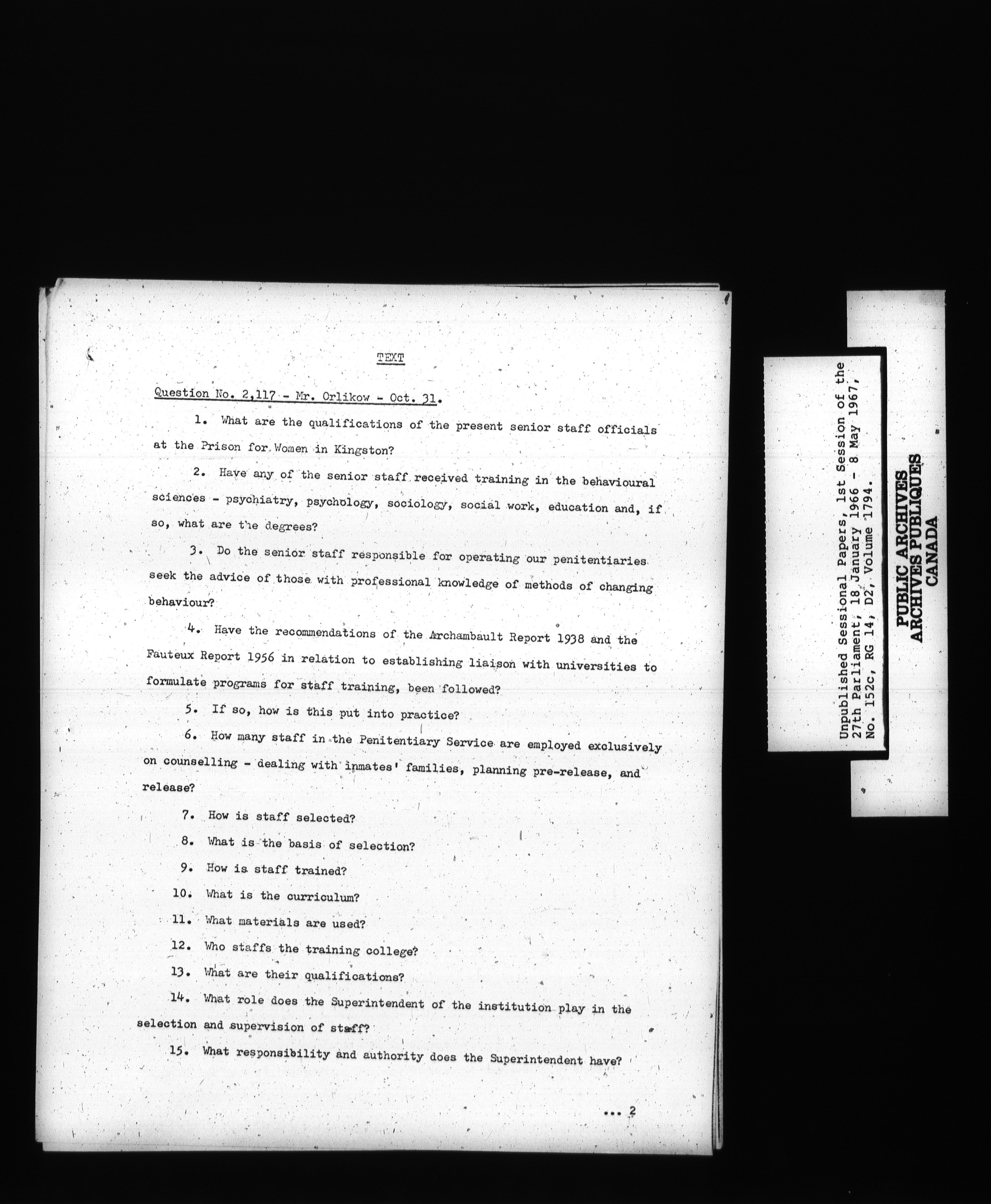 Unpublished sessional papers, 1st Session, 27th Parliament - 3718
