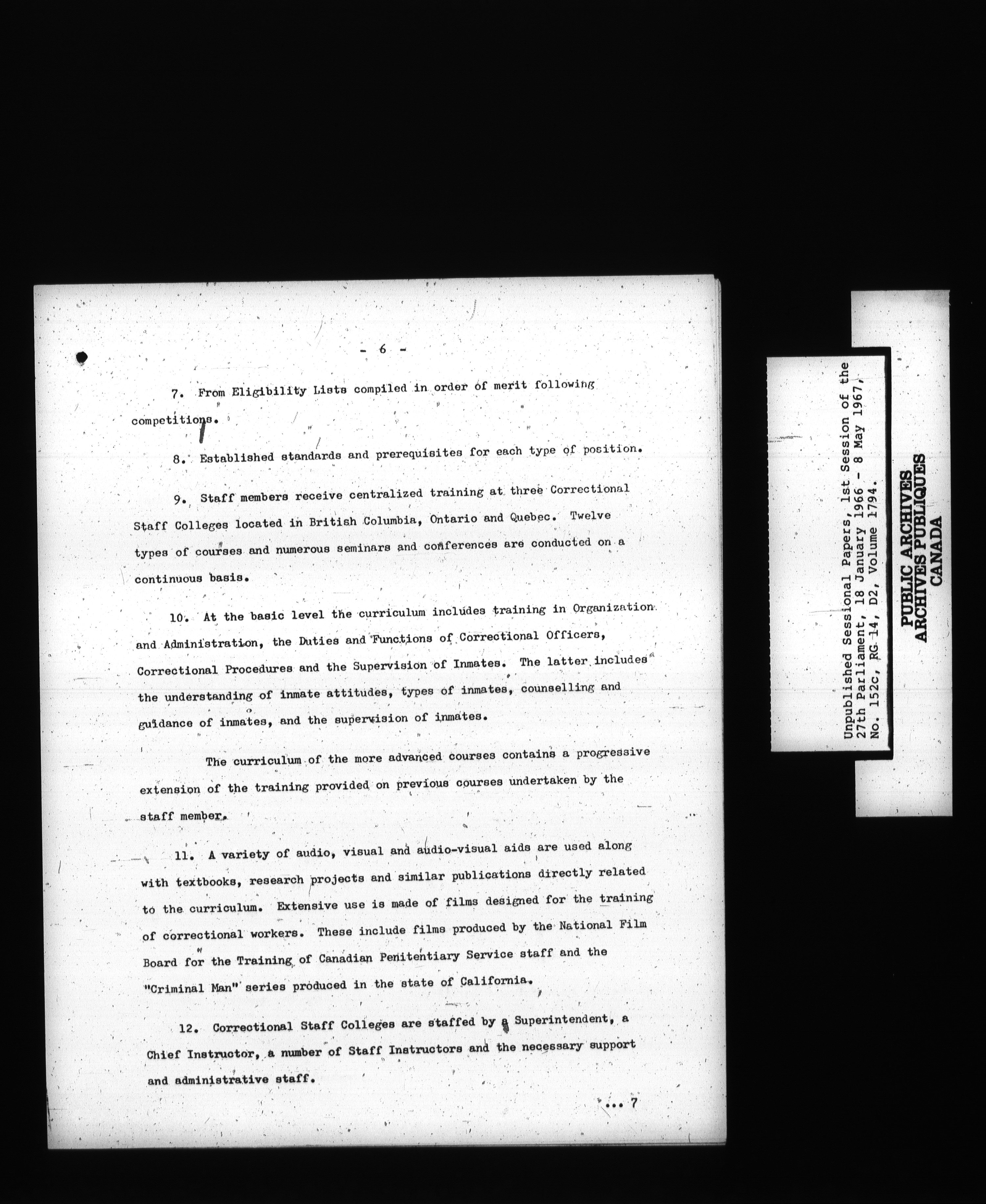 Unpublished sessional papers, 1st Session, 27th Parliament - 3718